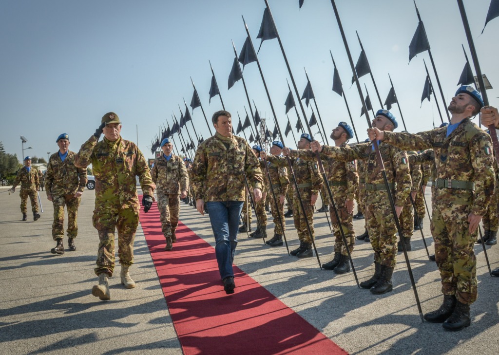 Il presidente del Consiglio Matteo Renzi in visita al contingente italiano in Libano, accompagnato dal capo di Stato Maggiore della Difesa Claudio Graziano.