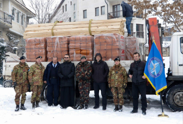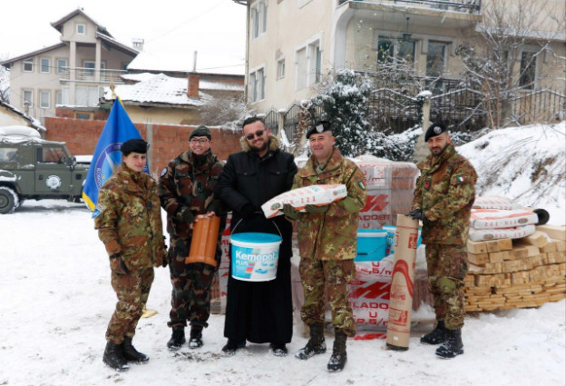 Pristina (Kosovo), 6 gennaio 2016 – Nei giorni scorsi militari italiani del Joint Regional Detachment Centre (JRD-C), che operano in Kosovo nell’ambito di KFOR, hanno finalizzato la donazione di materiali edili alla Chiesa di San Nicola, presso la municipalità di Pristina, per la ristrutturazione del luogo di culto. IL JRD-C è un unità multinazionale di KFOR a guida italiana con il compito di stabilire e mantenere costanti relazioni con la popolazione, le autorità locali, le istituzioni religiose e le organizzazioni internazionali presenti nella propria area di responsabilità.