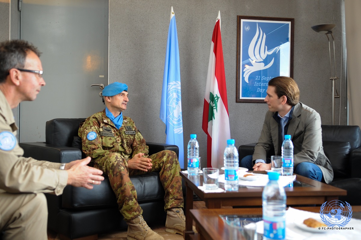 Naqoura (Libano), 09 gennaio 2016 – Il generale di divisione Luciano Portolano, Head of Mission e Force Commander di UNIFIL, ha ricevuto oggi il ministro degli Affari Esteri austriaco, Sebastian Kurz, giunto in visita ai militari austriaci di stanza presso il Quartier Generale della missione a Naqoura.