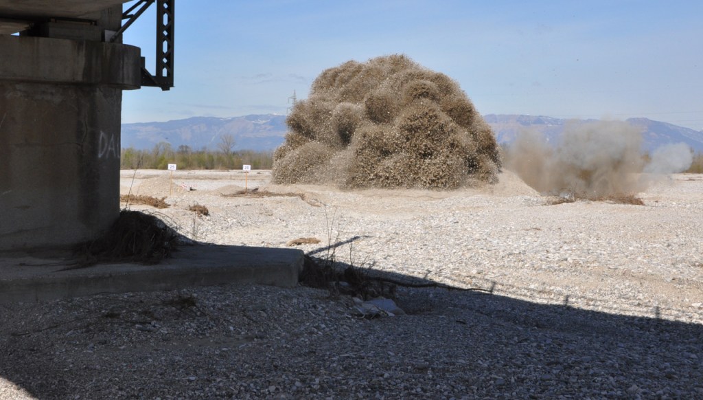 I militari si sono recati a Monfalcone (GO), nella zona demaniale appartenente alla Marina Militare, dove hanno prelevato una granata d’artiglieria calibro 76 mm ad alto esplosivo. L’ordigno è stato trasportato sul greto del fiume Torre nel comune di Medea (GO), dove il team EOD (Explosive Ordnance Disposal) ha provveduto alla distruzione finale.