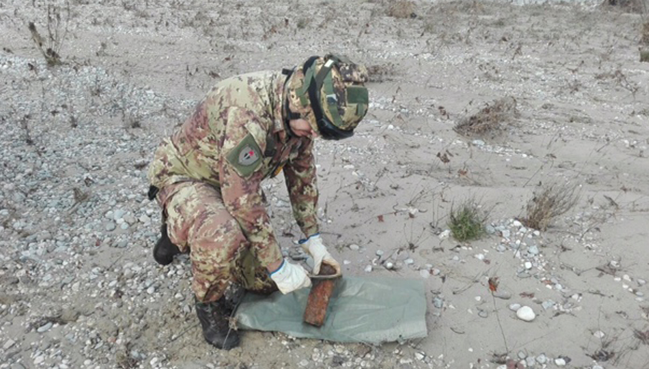 Guastatore del 3° Reggimento Genio Guastatori con ordigno bellico.
