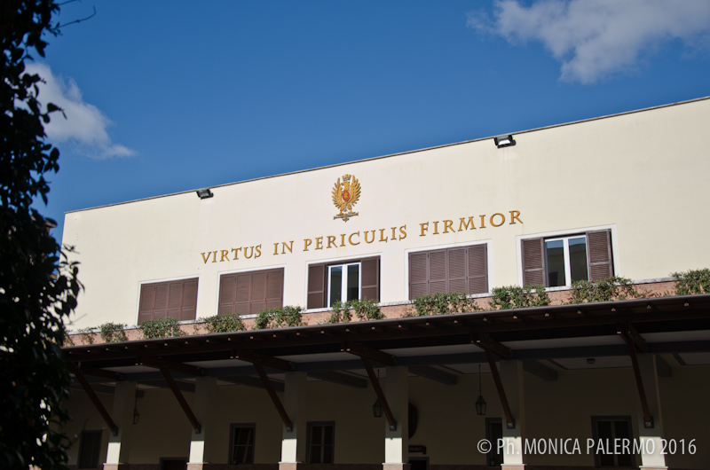 “Virtus in Periculis Firmior”, la virtù si rafforza nel pericolo, è il motto delle stemma araldico che sovrasta la caserma “Alessandro Negri di Sanfront” sede e base operativa del Reggimento Corazzieri, in via XX Settembre 12 a Roma.
