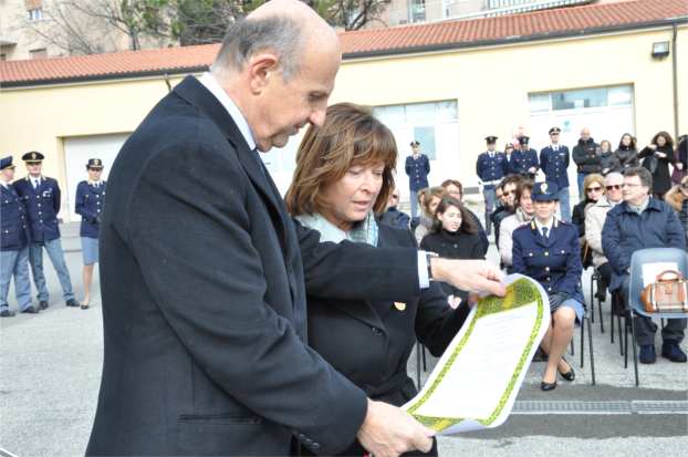 Al termine della cerimonia il capo della Polizia ha consegnato il diploma di intitolazione del Centro Polifunzionale alla vedova dell’Ispettore Capo Luigi Vitulli, la signora Barbara Battistella.
