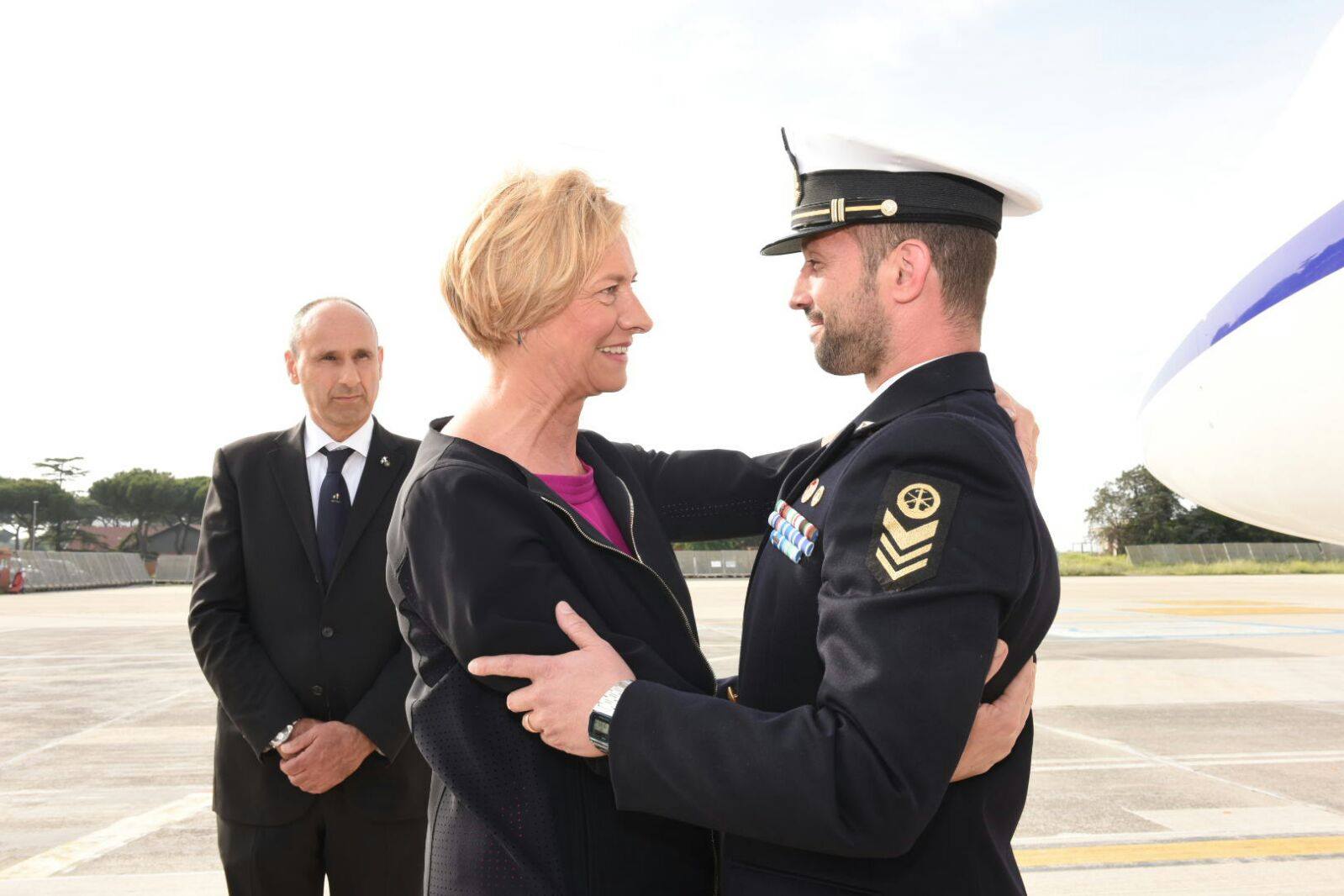 Ad accoglierlo erano il ministro degli Esteri, Paolo Gentiloni, con il quale ha scambiato una stretta di mano e il ministro della Difesa, Roberta Pinotti con cui c’è stato un lungo abbraccio. Ad attenderlo tra gli altri, anche i presidenti della commissione Esteri della Camera, Fabrizio Cicchitto, e del Senato, Pier Ferdinando Casini.