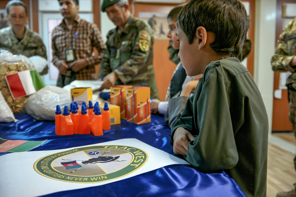 Herat, 22 giugno 2016 – Oggi, a Camp Arena, i militari italiani del Train Advise Assist Command West (TAAC W) hanno effettuato una donazione di generi alimentari e materiale scolastico in favore delle famiglie dei militari afgani caduti nell’espletamento del servizio.