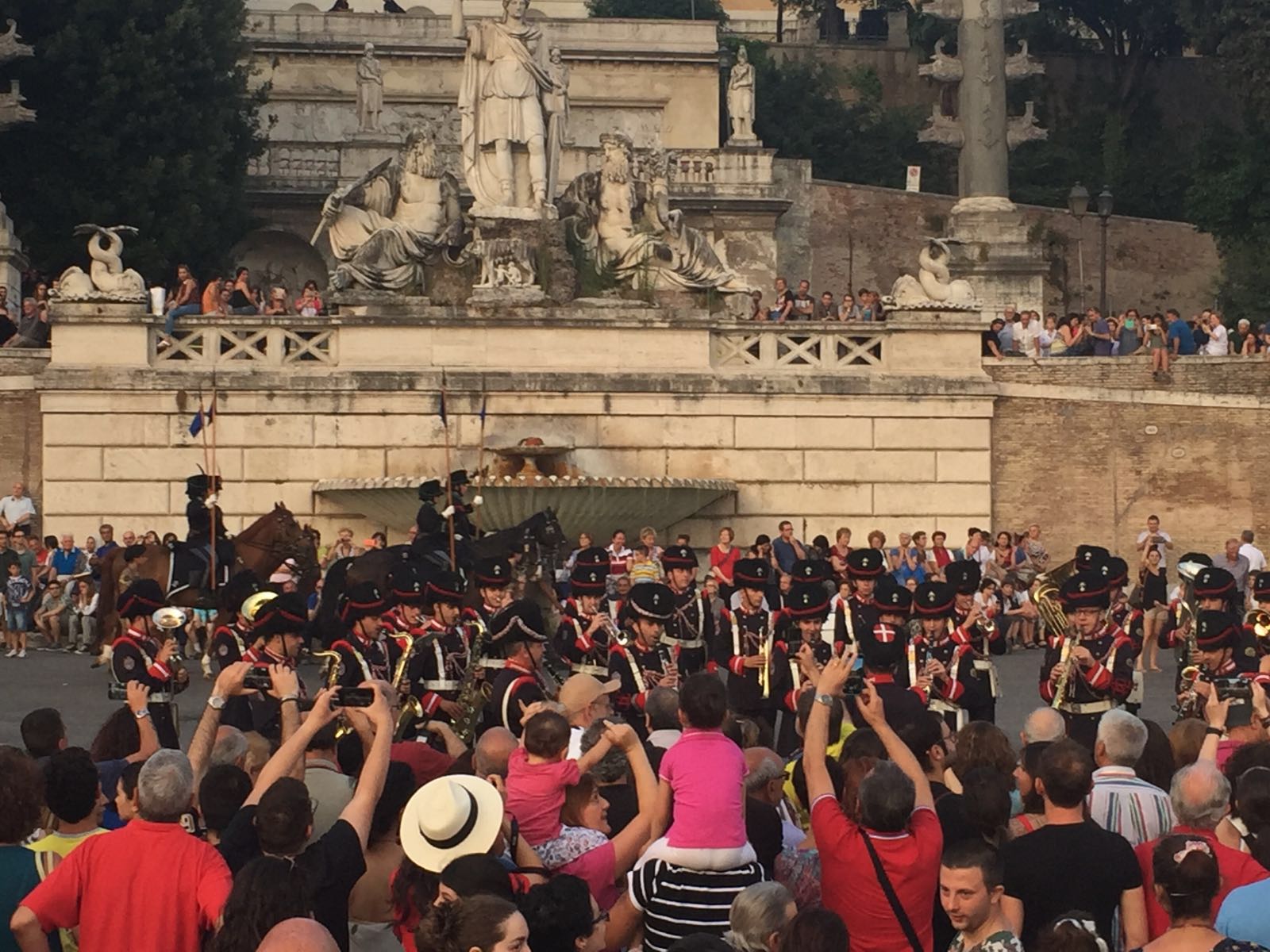 La banda (Musica d’Ordinanza) del 1º Reggimento Granatieri di Sardegna, in uniforme storica del 1848, ha intrattenuto il numeroso pubblico romano e straniero accorso per l’occasione, eseguendo brani del Risorgimento e chiudendo l’evento, dopo i fuochi artificiali, sulle note dell’inno di Mameli.