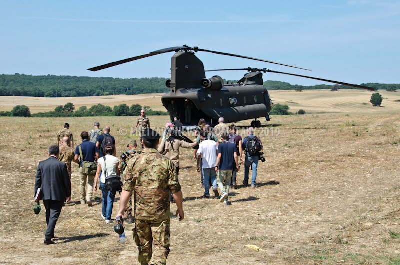 Dopo aver degustato le leccornie preparate per il nostro pranzo dal personale della scuola di commissariato a bordo di un Chinook siamo stati portati al poligono di Monte Romano per assistere ad esercitazioni a fuoco di artiglieria con i PZH 2000 calibro 155mm 52, obici semoventi di artiglieria di reazione rapida il miglior mix di prodotto e di qualità, mobilità e protezione. Caratteristiche principali del sistema sono: reazione rapida, dosatura del fuoco, in gran parte automatica; alta precisione e alto volume di fuoco, con munizioni NATO standard 155mm; capacità di gestire diversi tipi di munizioni e alta efficienza operativa.