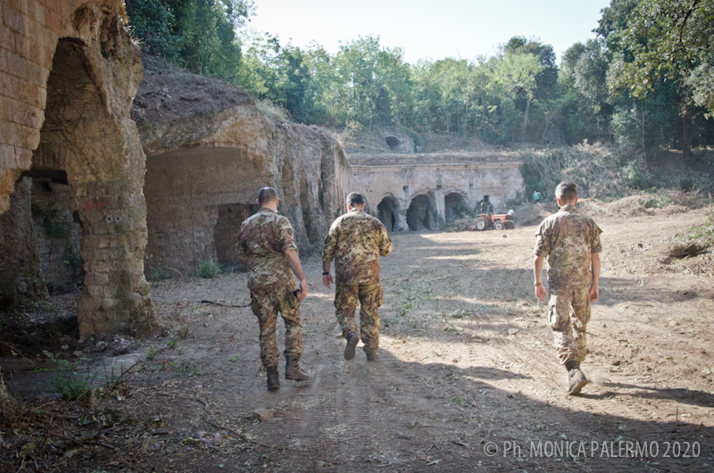 Militari con ruspe e camion trasportano da giorni la terra per ripulire l’area travolta da una folta vegetazione cresciuta negli anni, un’area di grande interesse storico per la città di Roma.