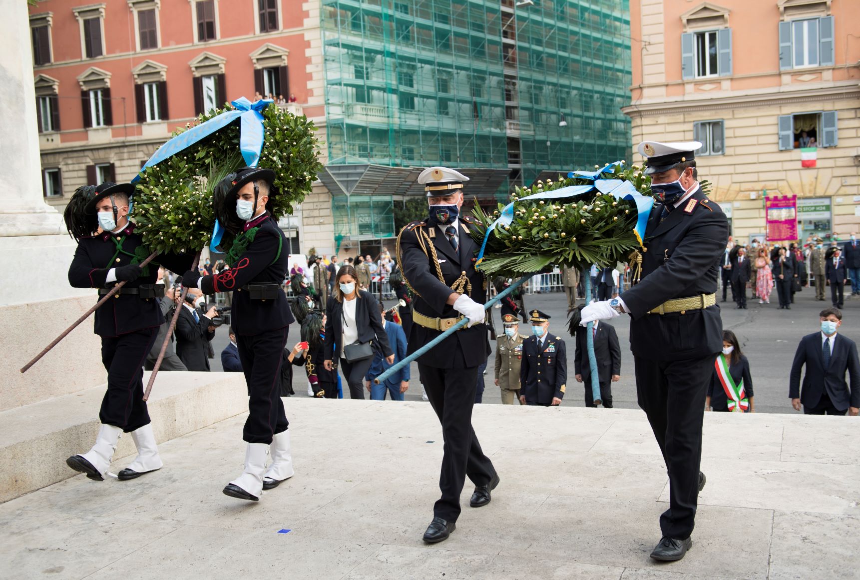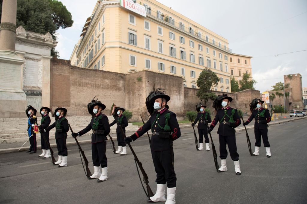 Un picchetto armato di Bersaglieri, corpo dell’Esercito protagonista della presa di Roma, ha reso gli onori alle Autorità indossando l’uniforme storica in dotazione alle truppe dell’epoca.
