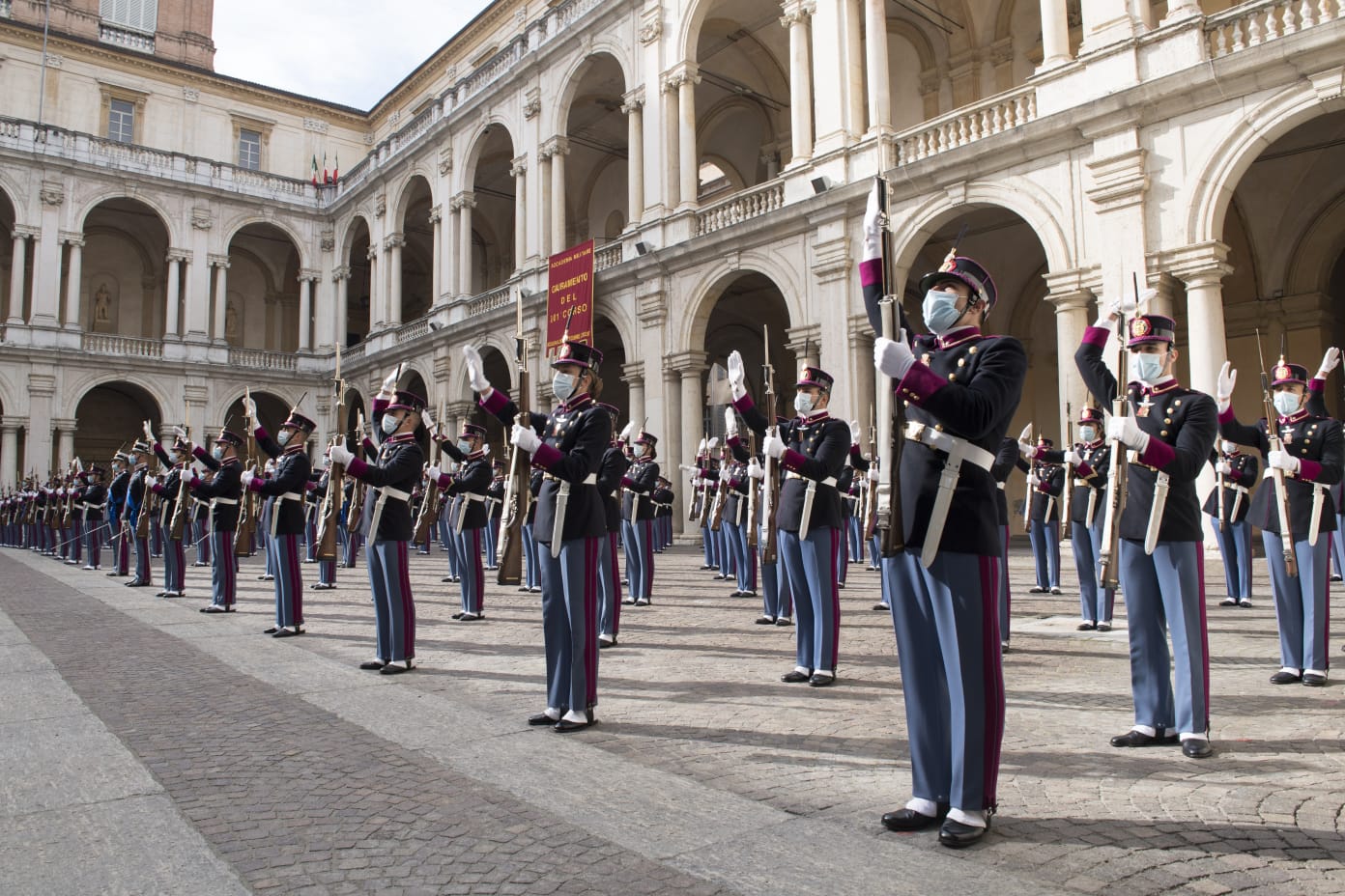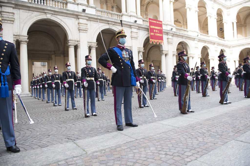 Modena, 31 ottobre 2020 – Giuramento solenne per i 211 allievi 201° corso “Esempio” ieri mattina all’interno del cortile d’onore dell’Accademia Militare e alla presenza del comandante per la Formazione, Specializzazione e Dottrina dell’Esercito, generale di corpo d’armata Salvatore Camporeale.