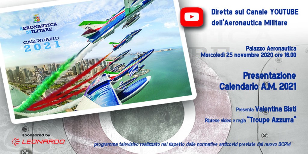 Roma, 25 novembre 2020 – Il Calendario 2021 dell’Aeronautica Militare verrà presentato mercoledì 25 novembre alle 16:00, in diretta streaming sul canale YouTube AM (Presentazione calendario 2021 Aeronautica Militare).