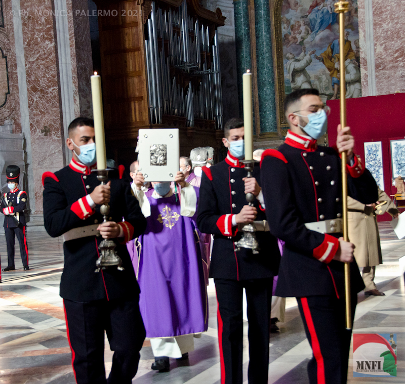 La messa è stata officiata dal vicario generale dell’ordinariato militare per l’Italia monsignor Angelo Frigerio, dal cappellano militare don Pier Luca Bancale, dal diacono Franco Tolomei, generale di cavalleria, e da don Giuseppe Ganciu, nuovo vicario episcopale per l’Esercito Italiano.