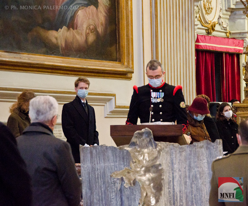 Incantevole il quadro che si presentava nella maestosità della Basilica di Santa Maria degli Angeli e dei Martiri in Roma che, pur nella esiguità dei presenti, è sembrata gremita di persone, grazie anche al dettagliato e squadrato schieramento dei protagonisti della cerimonia del duca: gli eredi, i celebranti, le autorità, i comandanti di reggimento, ma, innanzitutto le bandiere del 1° e del 2° reggimento “Granatieri di Sardegna”, il medagliere nazionale dell’Associazione Nazionale Granatieri di Sardegna, il catafalco con ai lati il picchetto nell’uniforme del 1776, data del lascito, dei fanti del Reggimento di Sardegna, il comandante del 1° reggimento, la musica d’ordinanza del 1° reggimento e le due compagnie Granatieri equamente distribuite ai lati della Basilica con i militari distanziati, nella bellezza della loro Grande Uniforme di rappresentanza per nulla “guastata” dalla mascherina sul volto.