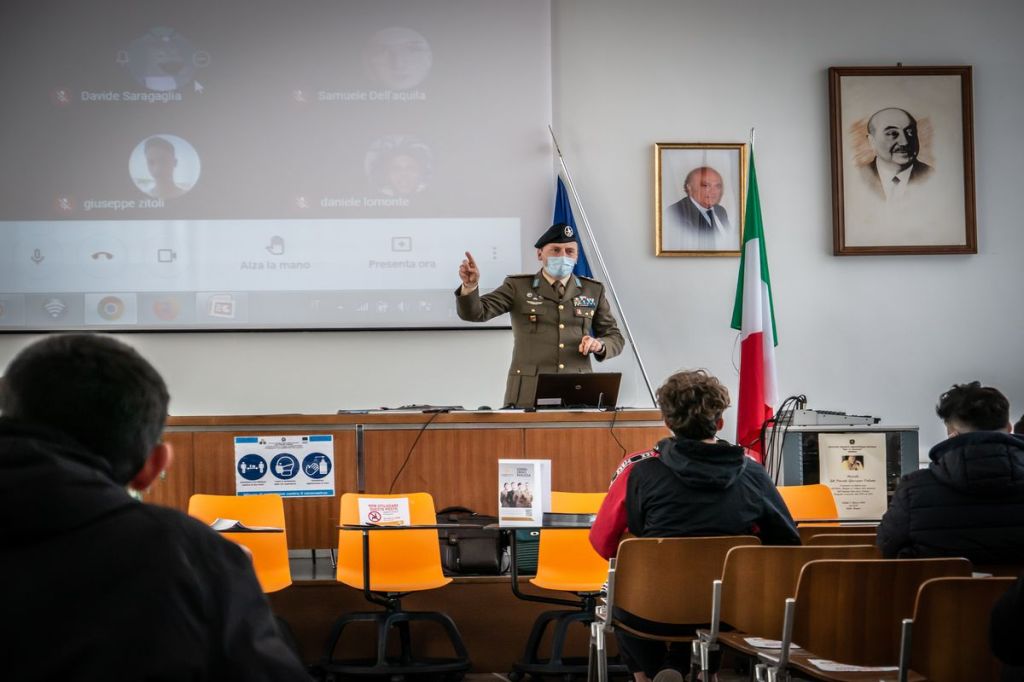 Il personale degli Infoteam, ovvero militari specializzati nella comunicazione e nel reclutamento, in aderenza alle disposizioni in materia di contenimento e contrasto dell’emergenza epidemiologica da COVID-19, ha incontrato gli studenti dell’Istituto Tecnico Industriale Statale “Sen. Onofrio Jannuzzi” e dell’Istituto Tecnico Economico Statale “Ettore Carafa” di Andria, attraverso le piattaforme informatiche per la didattica digitale integrata (DDI) utilizzate dal Ministero dell’Istruzione durante questo particolare periodo.