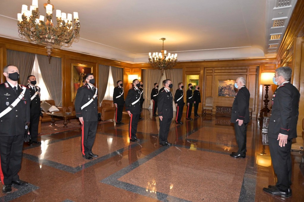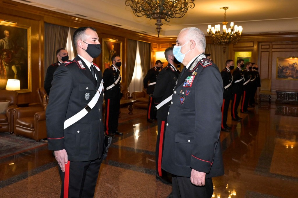 Roma, 24 febbraio 2021 – Il comandante generale dell’Arma Teo Luzi insieme al capo di Stato Maggiore generale di divisione Mario Cinque ha incontrato presso il Comando Generale dei Carabinieri una rappresentanza dei militari del 13° reggimento unitamente al comandante colonnello Saverio Ceglie. I Carabinieri sono arrivati a Roma per accogliere e scortare le spoglie dell’ambasciatore Luca Attanasio e del collega ed amico carabiniere Vittorio Iacovacci. Tra loro era presente l’appuntato Salvatore Di Giorgio che si è offerto volontario per andare a sostituire il commilitone deceduto in Congo. Gli stessi militari saranno coloro che domani effettueranno il servizio d’onore ai funerali di Stato presso la Basilica di Santa Maria degli Angeli.