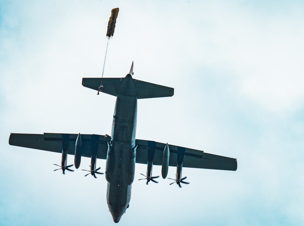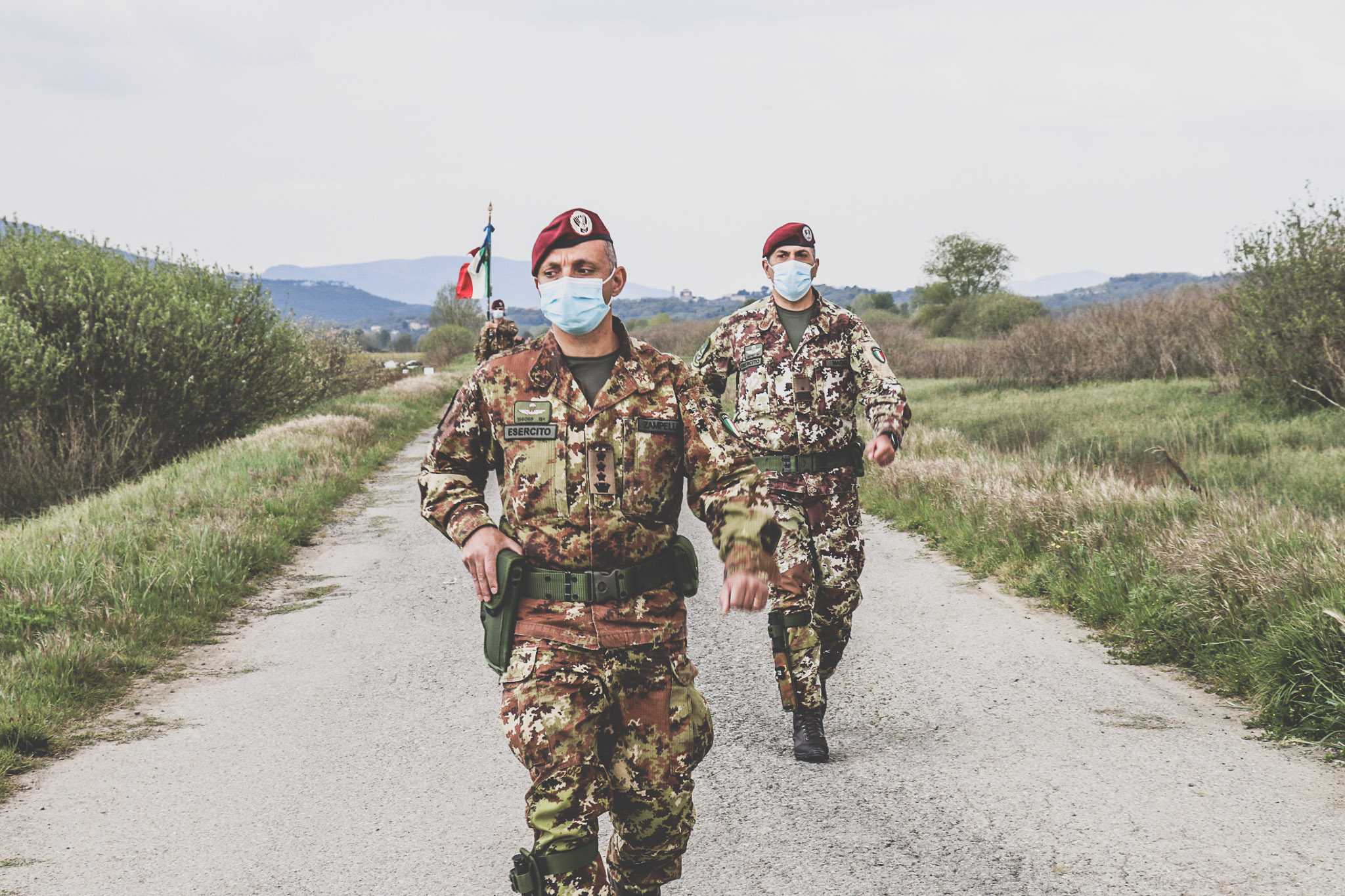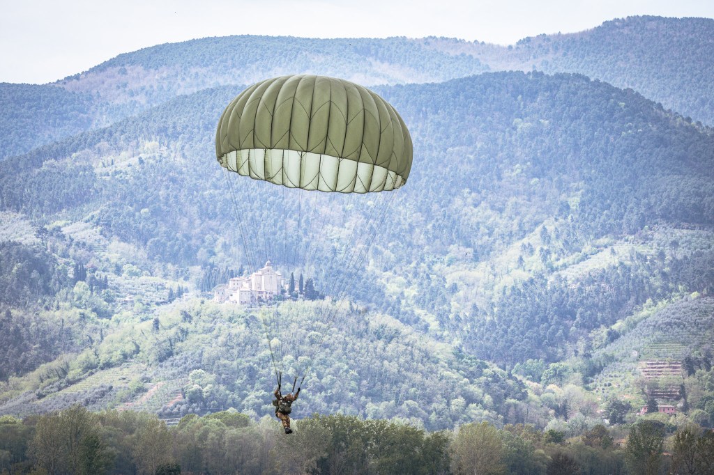 Nel rispetto delle disposizioni sanitarie attualmente in vigore, l’ufficiale paracadutista più giovane dell’unità, avendo saldamente vincolato a sé la Bandiera di Guerra, insieme ad alcuni paracadutisti del “Nembo,” è salito a bordo di un aereo C130J della 46^ Brigata Aerea, schierato presso l’aeroporto di Pisa. Dopo il decollo e qualche minuto di volo è avvenuto l’aviolancio sulla zona di Altopascio (PI).