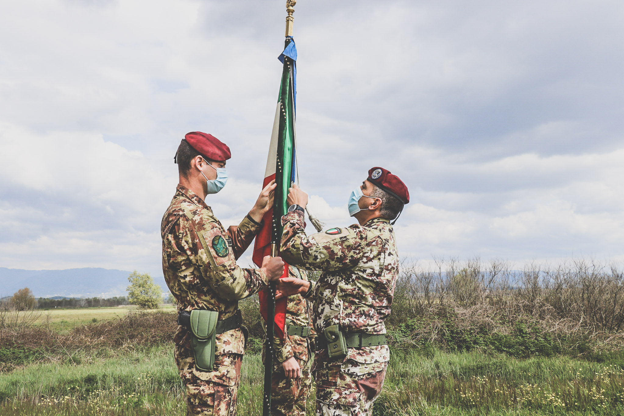 Pistoia, 19 aprile 2021 – In occasione del 76° anniversario della battaglia di Case Grizzano, il 183° reggimento paracadutisti “Nembo” ha ricordato l’evento storico con l’aviolancio della Bandiera di Guerra del Reparto.