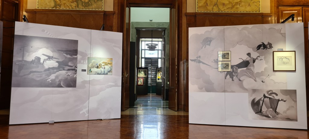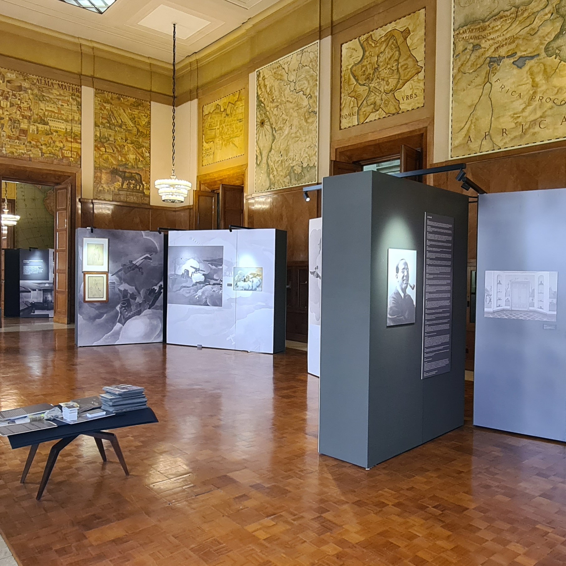 A Palazzo Aeronautica saranno riuniti per la prima volta anche documenti, foto e cimeli provenienti da prestatori e collezioni italiane, pubbliche e private, e sarà possibile ammirare alcuni dei dipinti murali che il famoso pittore e cartellonista realizzò dal 1931 al 1933 negli ambienti dell’allora Ministero dell’Aeronautica. La riscoperta ed il restauro di tali opere murali, rimaste finora nascoste al pubblico, è stata possibile grazie alla virtuosa collaborazione tra l’Aeronautica Militare e la Soprintendenza Speciale Archeologica Belle Arti e Paesaggio di Roma.