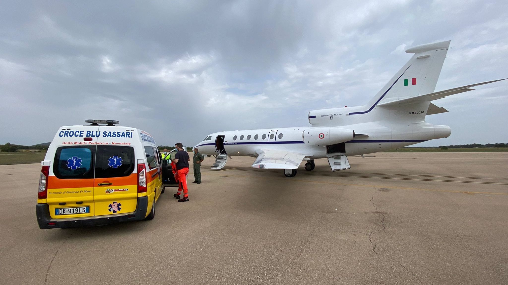 16 SETTEMBRE, EQUIPAGGIO DEL 31° STORMO SU UN FALCON 50 TRASPORTA URGENTEMENTE UN BIMBO DI 45 GIORNI, DA SASSARI A GENOVA