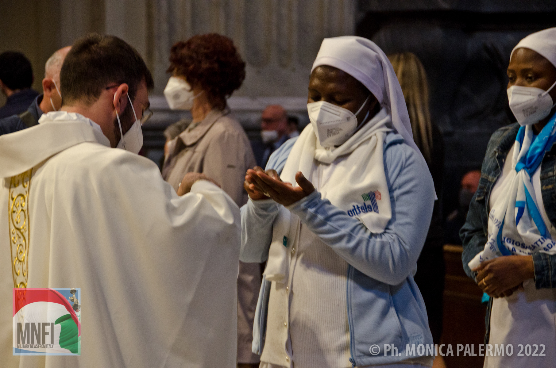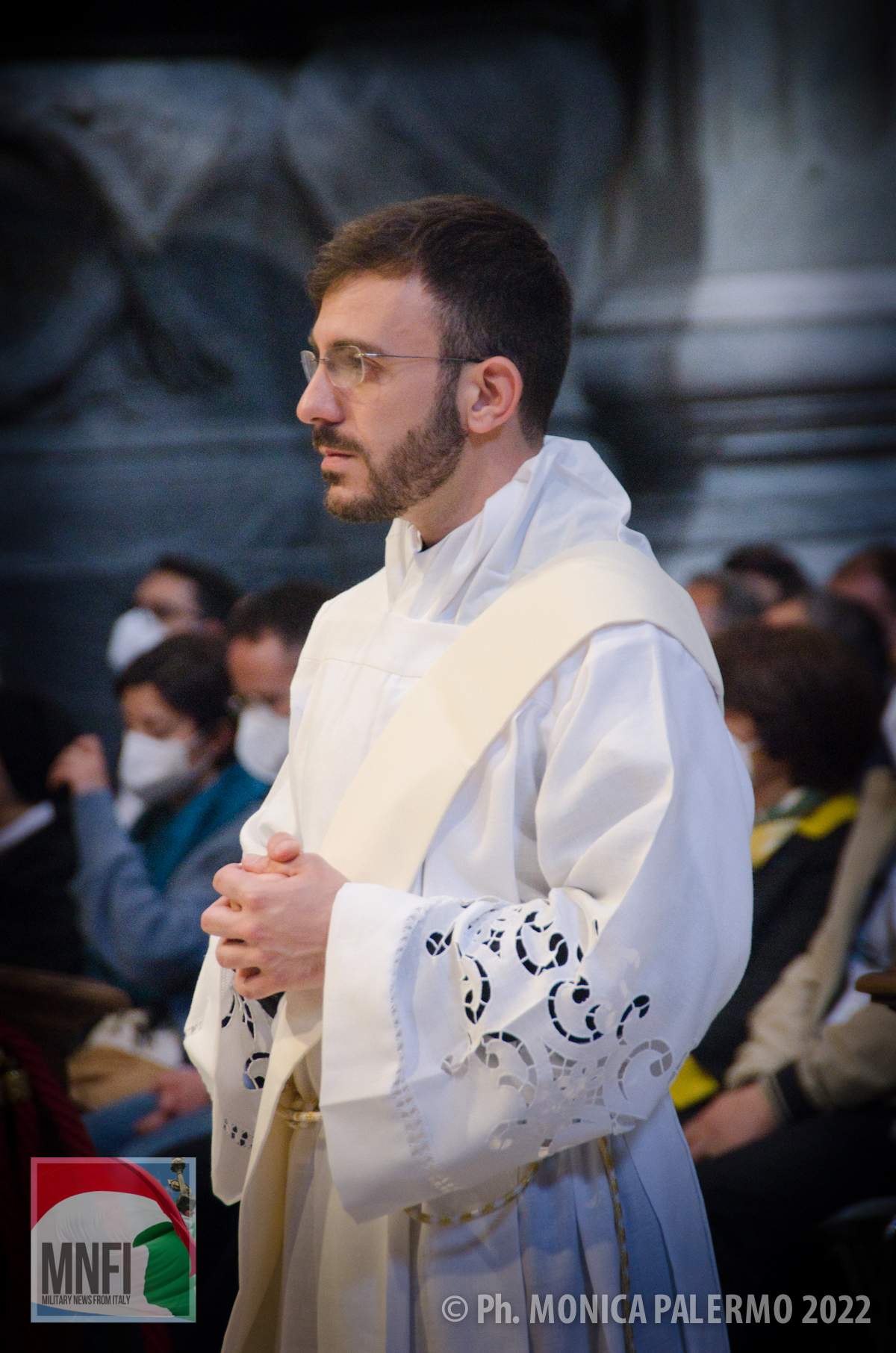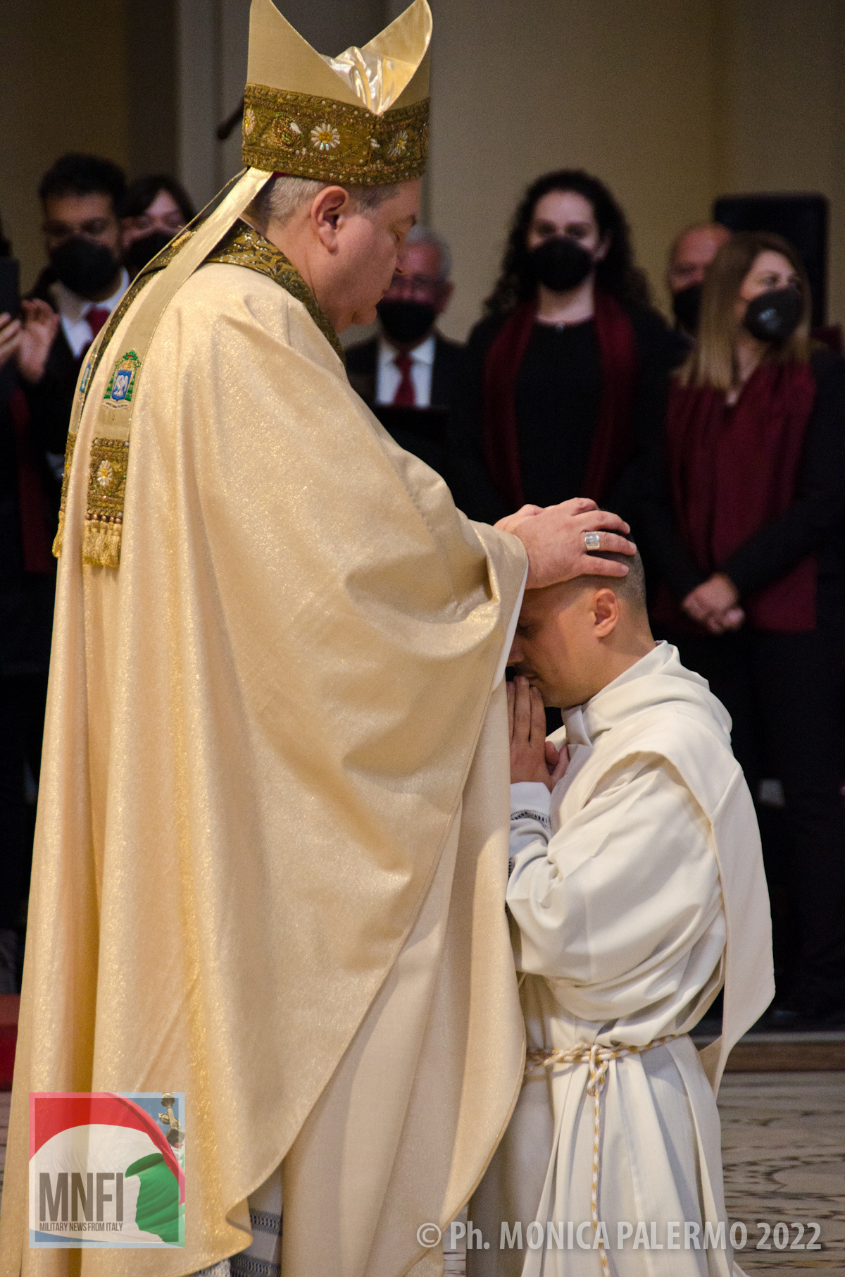 All’omelia don Santo ha delineato tre dimensioni che qualificano il pastore: trasmettere la luce restando umili servitori davanti alla parola; condurre verso la luce, conoscendo il Padre e le pecore affidate, amandole, essendo una cosa sola con loro; farsi canali della luce stando davanti a Dio. Così il vescovo ai tre eletti: “Il sacerdozio non è un fare ma un essere che scaturisce dallo stare. Stare davanti a Dio soprattutto nella tribolazione, nostra e di coloro che ci sono affidati, e davanti alle grandi tribolazioni della storia: voi diventate cappellani militari in un tempo in cui gli uomini e le donne delle nostre forze armate sono tribolati dalla pandemia e dalla minaccia di una terribile guerra.”