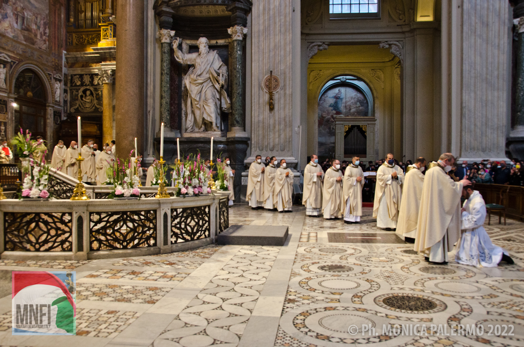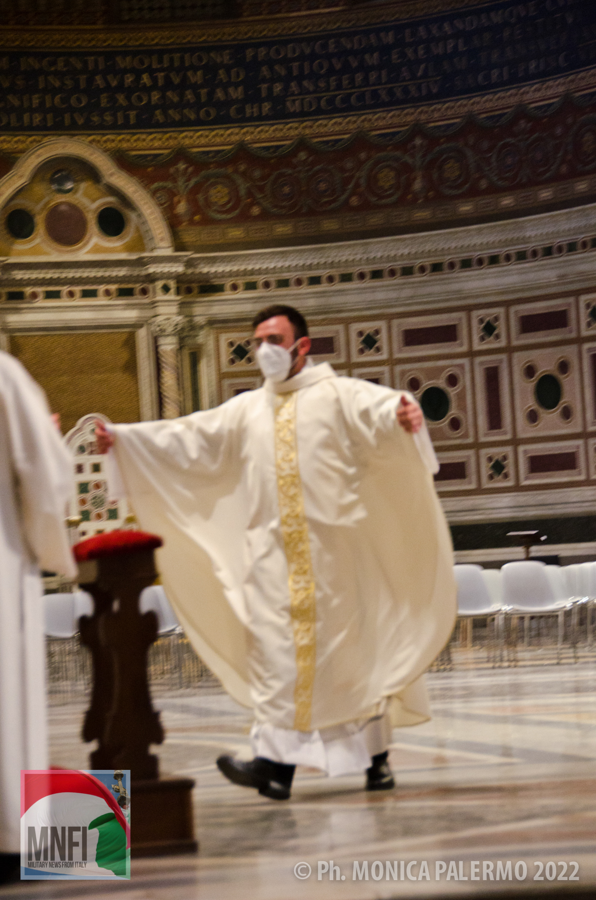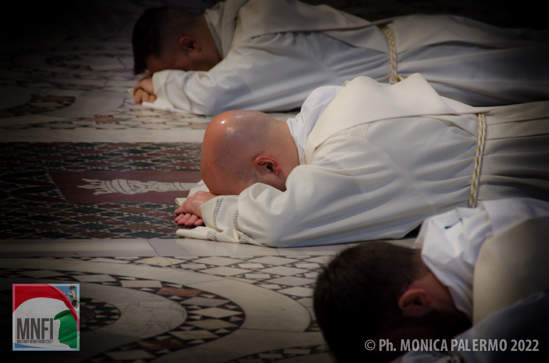 Roma, 17 maggio 2022 – (di Christian Massaro) La Chiesa Militare, nei primi vespri della IV domenica di Pasqua, detta del Buon Pastore, ha accolto come presbiteri don Luigi Benemerito, don Valerio Carluccio e don Giuseppe Massaro, giovani che, attratti dall’amore del Signore, hanno deciso di seguirlo per diventare suoi annunciatori dedicandosi in particolare agli uomini e alle donne con le stellette. La celebrazione è stata presieduta dall’Ordinario Militare, mons. Santo Marcianò e concelebrata da mons. Daniele Libanori, vescovo ausiliare di Roma e da un centinaio di sacerdoti, cappellani militari e amici dei tre eletti. Ha assistito alla messa mons. Luca Brandolini, vicario dell’arciprete della Basilica di San Giovanni in Laterano che ha ospitato la liturgia di ordinazione.
