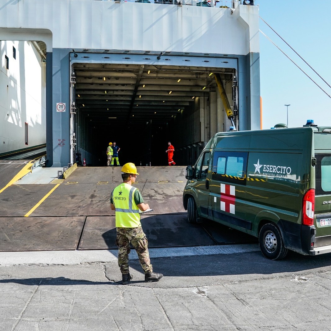 Il carico, supportato del nucleo gestione transiti del reggimento RSOM (Reception Staging and Onward Movement) di Bari, è composto da 55 container, 49 veicoli tattico-logistici e materiali a disposizione del contingente italiano, per l’assolvimento della missione autorizzata dalle autorità politiche italiane sotto egida NATO.