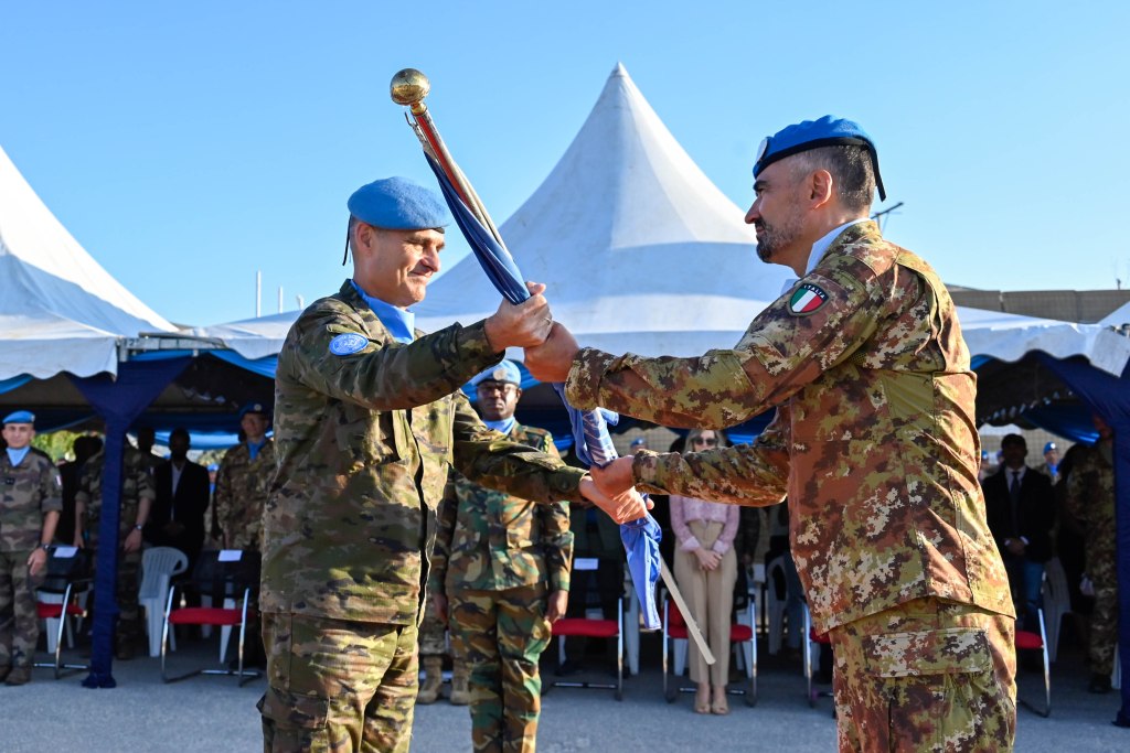 A sancire il trasferimento d’autorità il passaggio della Bandiera delle Nazioni Unite tra il generale di brigata Massimiliano Stecca, comandante della brigata di Cavalleria “Pozzuolo del Friuli” e il generale di brigata Giuseppe Bertoncello, comandante della brigata meccanizzata “Aosta”.