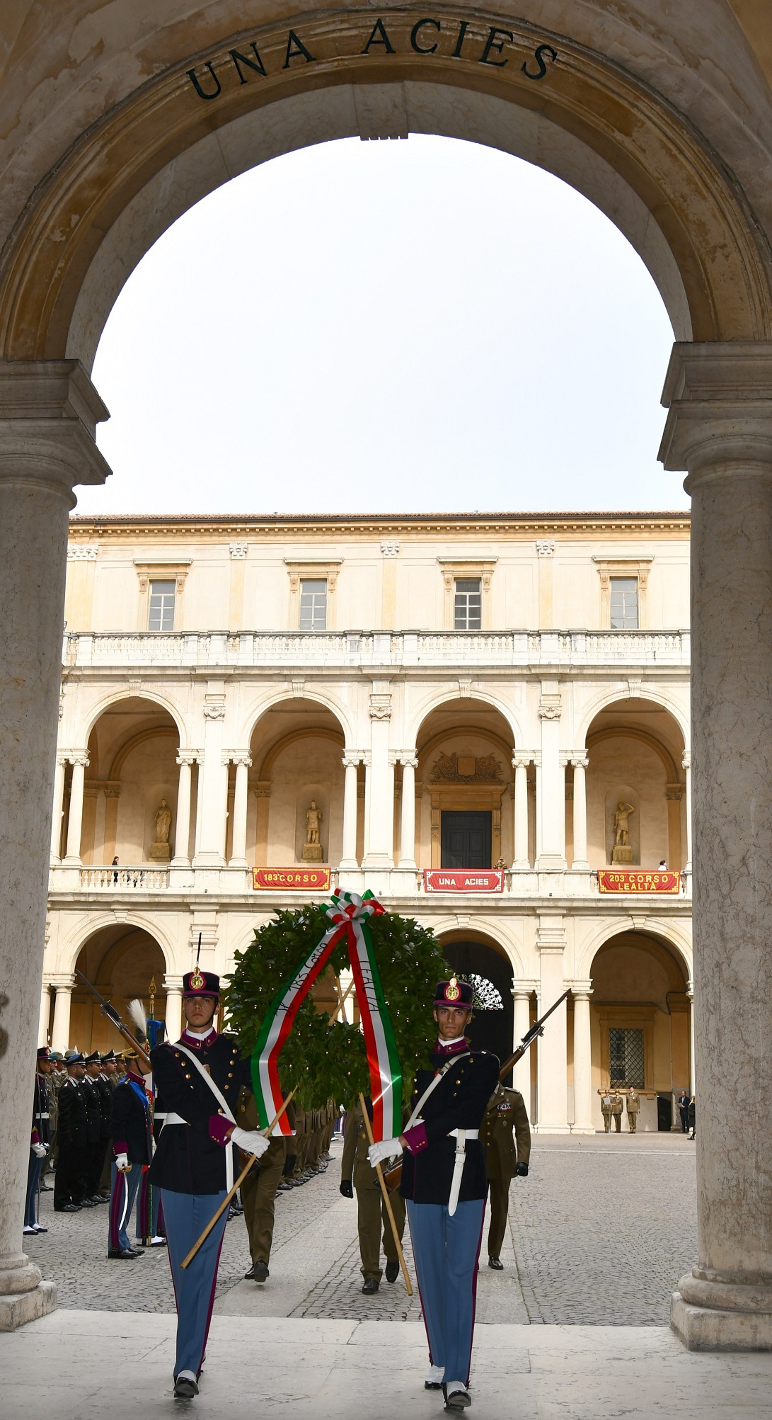 Inquadrati come un’unica schiera, come il motto “UNA ACIES” dell’Accademia Militare, gli ufficiali del 183° corso “Lealtà” e i cadetti dell’omonimo 203° corso, gli uni di fronte agli altri hanno suggellato, con il tradizionale “gemellaggio”, il profondo vincolo di fratellanza che lega tra loro le diverse generazioni di Allievi che, tra le mura austere del più antico tra gli istituti di formazione militare del mondo, trascorrono i primi anni di formazione per la nomina a Ufficiali dell’Esercito e dell’Arma dei Carabinieri.