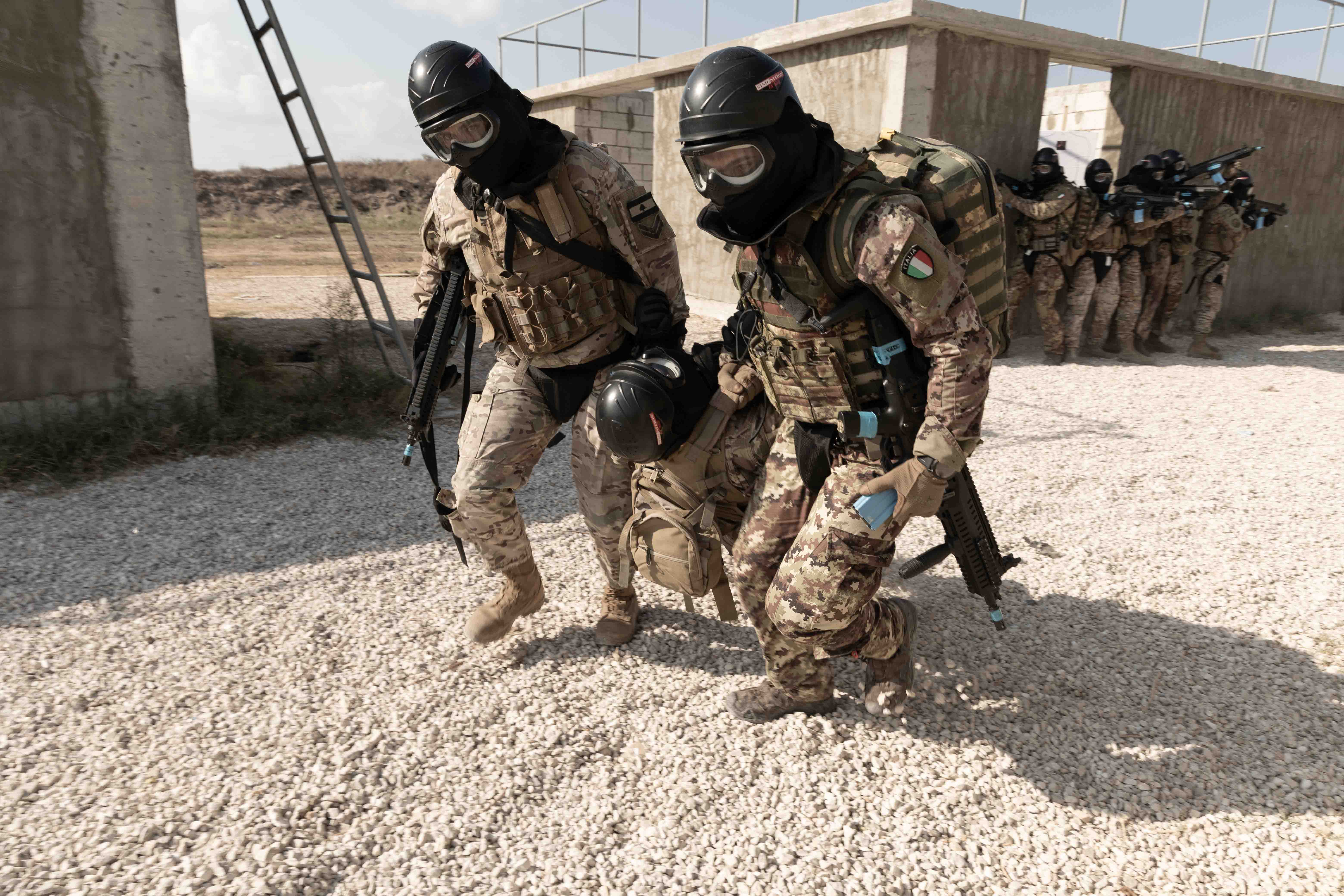 L’ultimo modulo addestrativo appena concluso, sviluppato congiuntamente con la 5^ brigata delle LAF, ha avuto per scenario l’approccio operativo nei centri abitati, con lo scopo di armonizzare le rispettive procedure tecnico-tattiche. In particolare, la progressione addestrativa ha visto, nella sua fase iniziale, approfondire le tecniche di movimento congiunto e le formazioni di una pattuglia mista, per poi focalizzare l’attenzione sulla bonifica ambientale di singoli edifici di varia conformazione e natura.