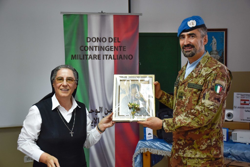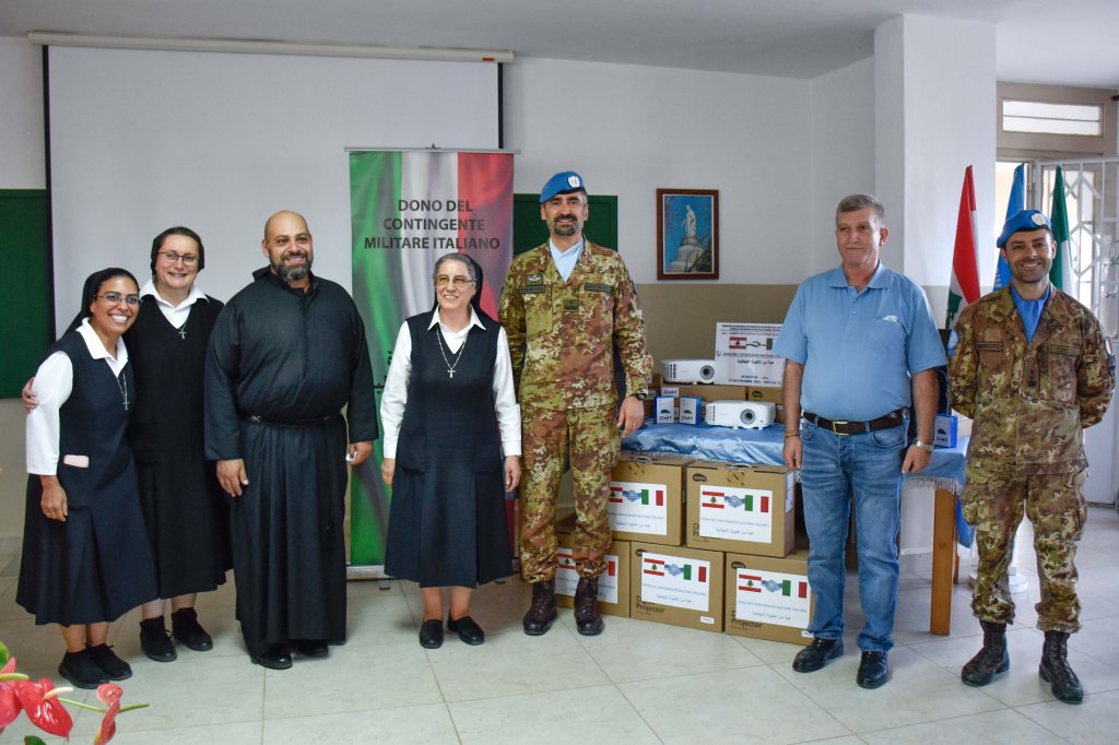 Shama, 27 ottobre 2022 – I Caschi Blu italiani del Settore Ovest di UNIFIL (United Nation Interim Force in Lebanon) hanno donato materiali informatici, quali personal computer portatili, videoproiettori e ausili didattici, all’Istituto scolastico delle Sorelle Antoniane di Rumaysh, municipalità all’estremo sud dell’area di operazioni del Contingente italiano in Libano.