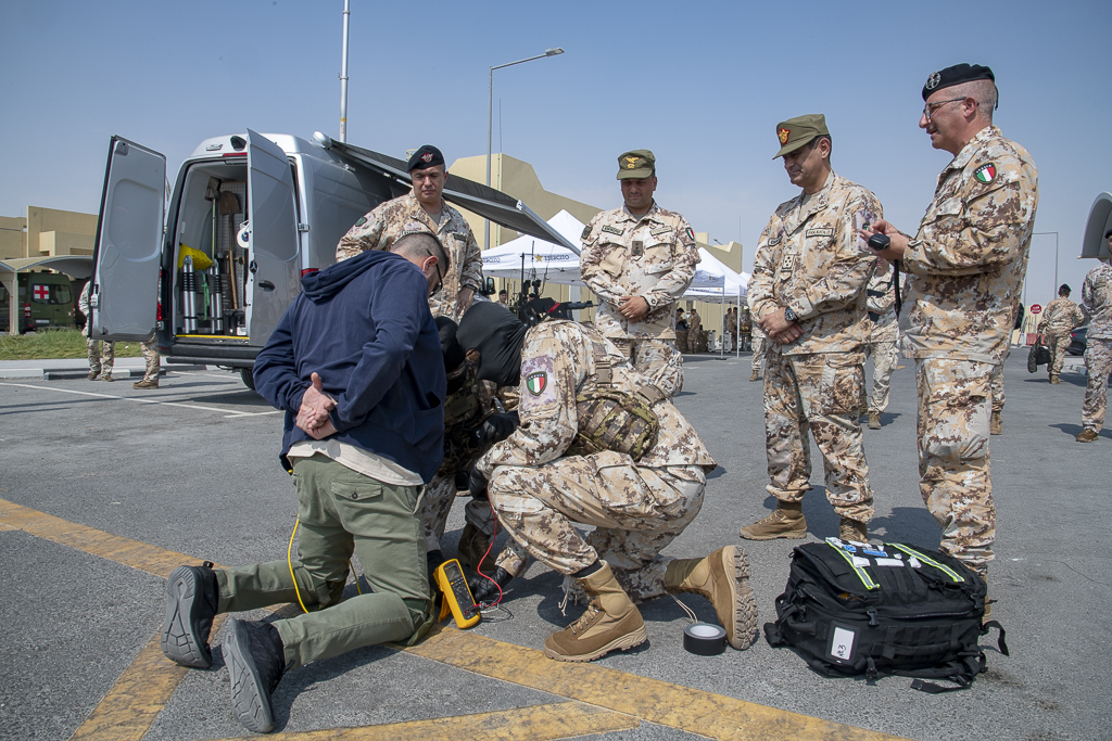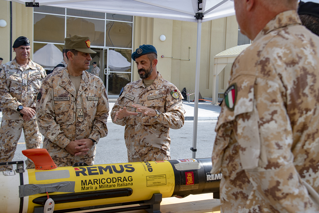 L’incontro è proseguito con un attività dimostrativa finalizzata a illustrare le capacità esprimibili dal contingente italiano in termini di materiali, equipaggiamenti, mezzi e sistemi in dotazione alle unità specialistiche delle tre Task Forces del contingente (TF LAND, TF REMUS e TF C-UAS).