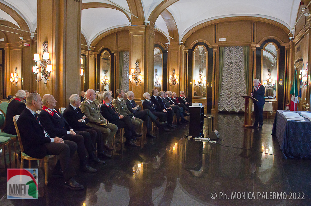 Al termine della presentazione il generale Antonello Falconi ha omaggiato una copia del calendario 2023 al generale Rolando Mosca Moschini, che ha poi preso la parola ringraziando i presenti, raccontando alcuni aneddoti di quando era al comando della Brigata, prima di augurare le Buone Feste a tutti.