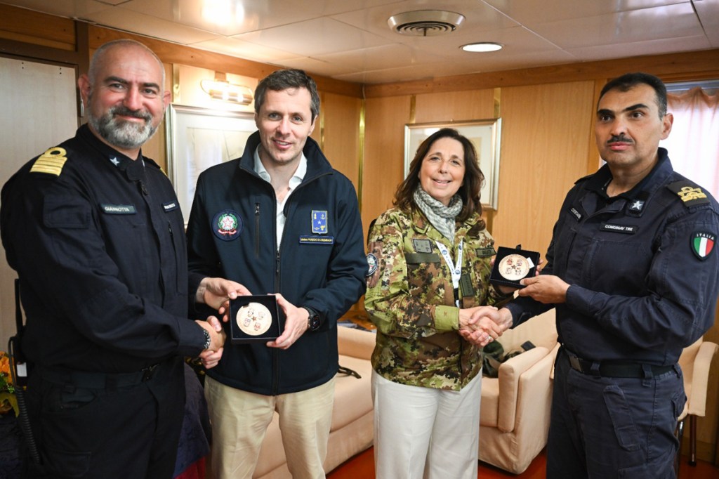 Nel corso della giornata, le autorità e gli ospiti hanno raggiunto la nave anfibia San Giusto, in navigazione al largo delle coste cagliaritane e inserita in un dispositivo navale che vedeva anche la presenza di nave Garibaldi, della fregata Alpino, del San Giorgio, del sommergibile Gazzana, di motovedette della Guardia di Finanza per un complesso di circa 1200 uomini e donne. A fare gli onori di casa, il contrammiraglio Stefano Costantino, comandante della Terza Divisione Navale. A bordo dell’unità navale, fanti della Brigata Marina “San Marco” e Lagunari del Reggimento “Serenissima” dell’Esercito Italiano, a dimostrazione della piena interoperabilità e integrazione tra reparti anfibi delle due Forze Armate, nell’ambito della Capacità Nazionale di Proiezione dal mare.