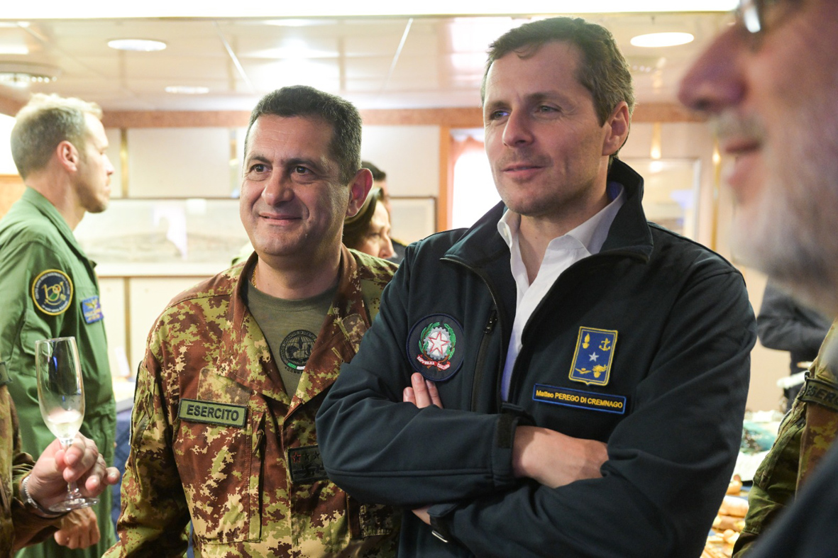 Tra le autorità, i capi di Stato Maggiore dell’Esercito generale di corpo d’armata Pietro Serino, della Marina Militare ammiraglio di squadra Enrico Credendino, il comandante generale dell’Arma dei Carabinieri generale di corpo d’armata Teo Luzi e il neo comandante generale della Guardia di Finanza, generale di corpo d’armata Andrea De Gennaro, la cui nomina è stata formalizzata dal Consiglio dei Ministri proprio ieri, nel corso della visita. Tra i presenti anche il comandante della squadra aerea generale sq. Alberto Biavati, il presidente di Confindustria Carlo Bonomi e il professore Gianni Riotta, membro del comitato per lo sviluppo e la valorizzazione della cultura della Difesa.
