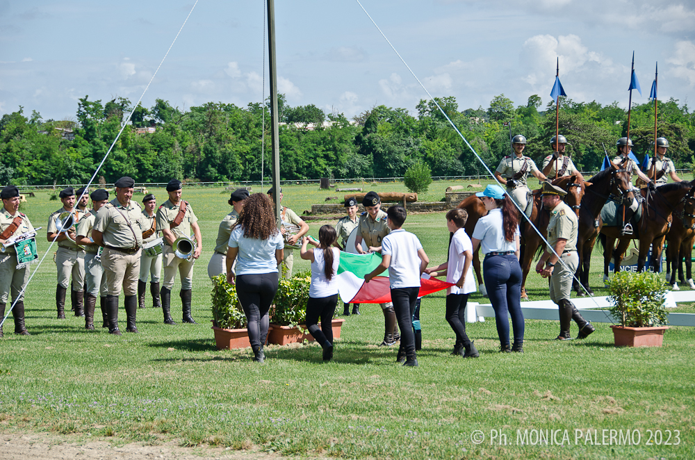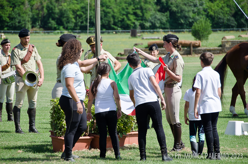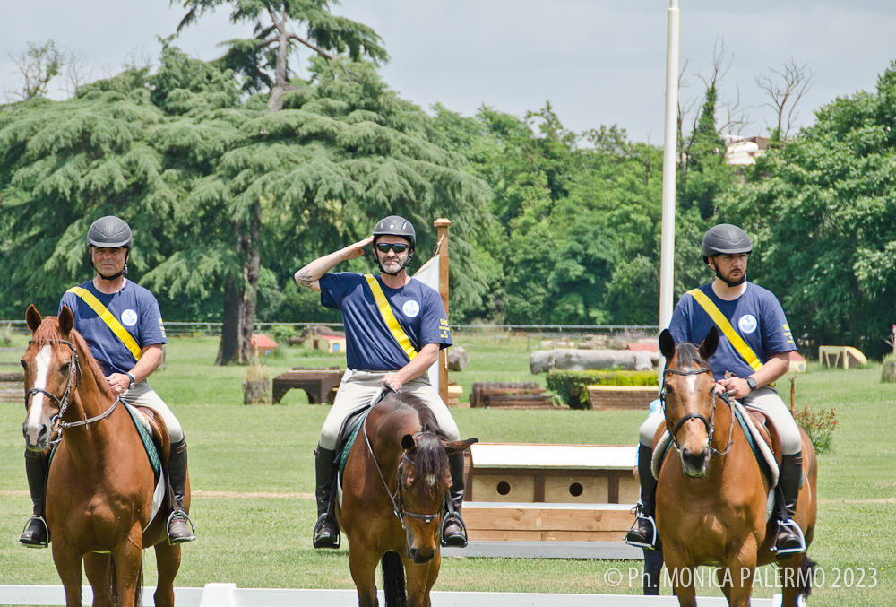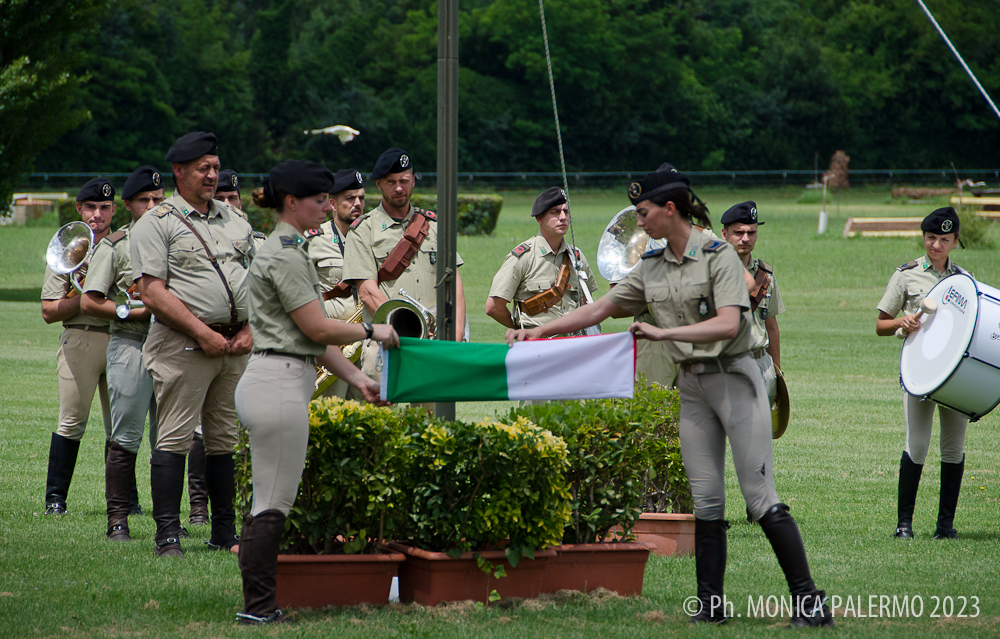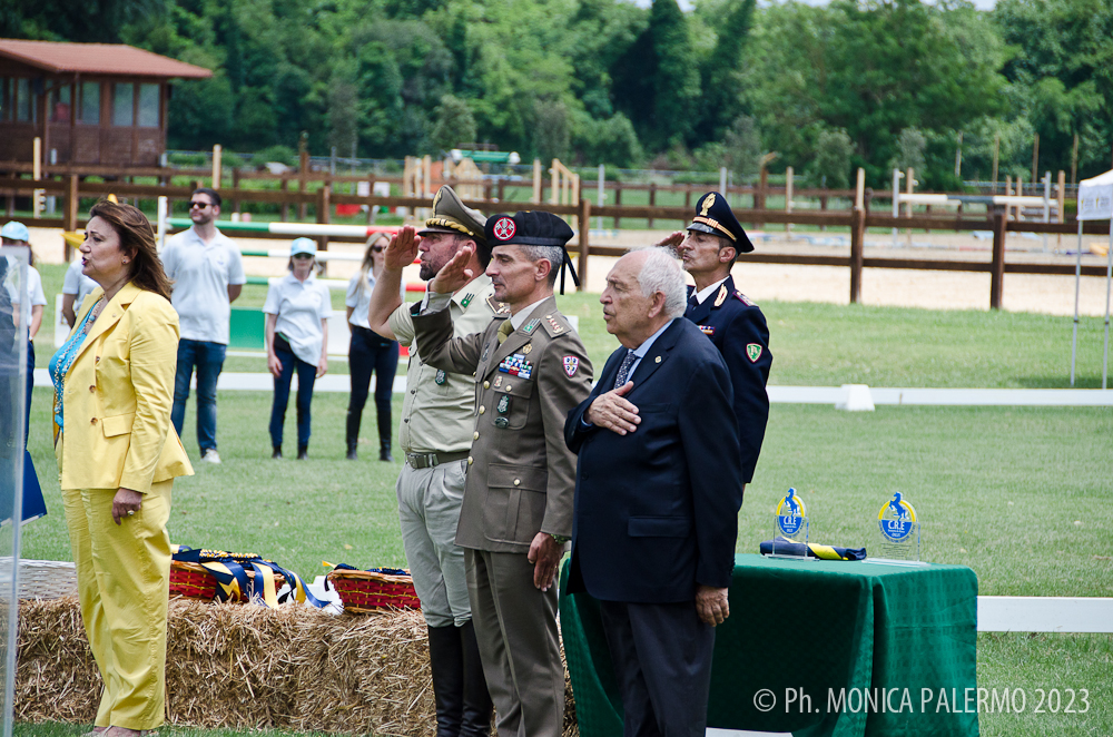 La cerimonia dell’alzabandiera, sulle note del Canto degli Italiani, eseguito dalla Fanfara a Cavallo dei Verdi Lancieri, ha dato il via all’importante manifestazione equestre.
