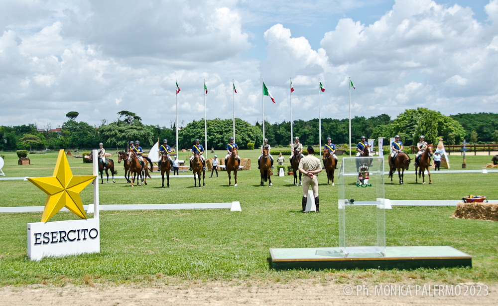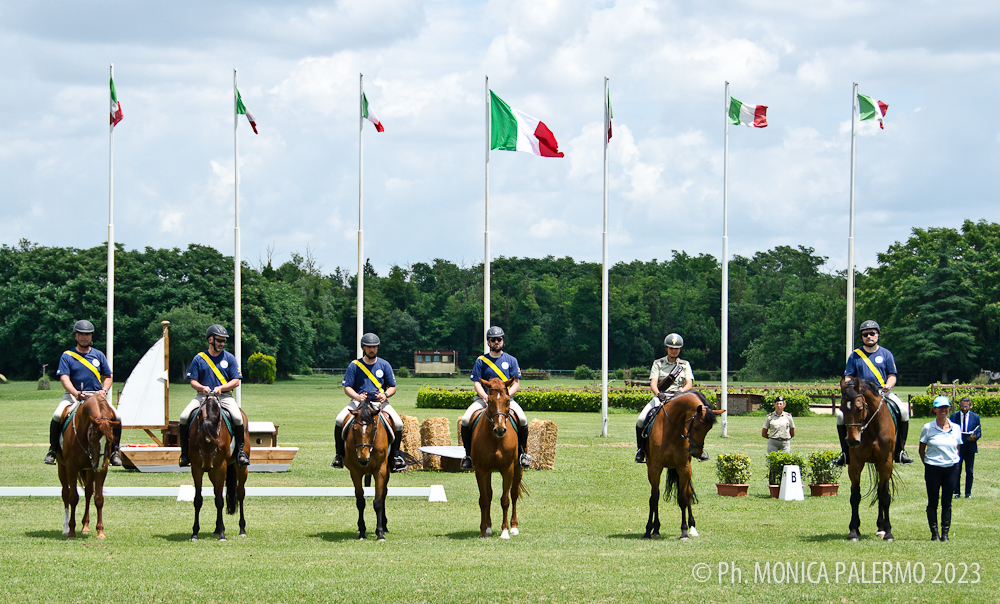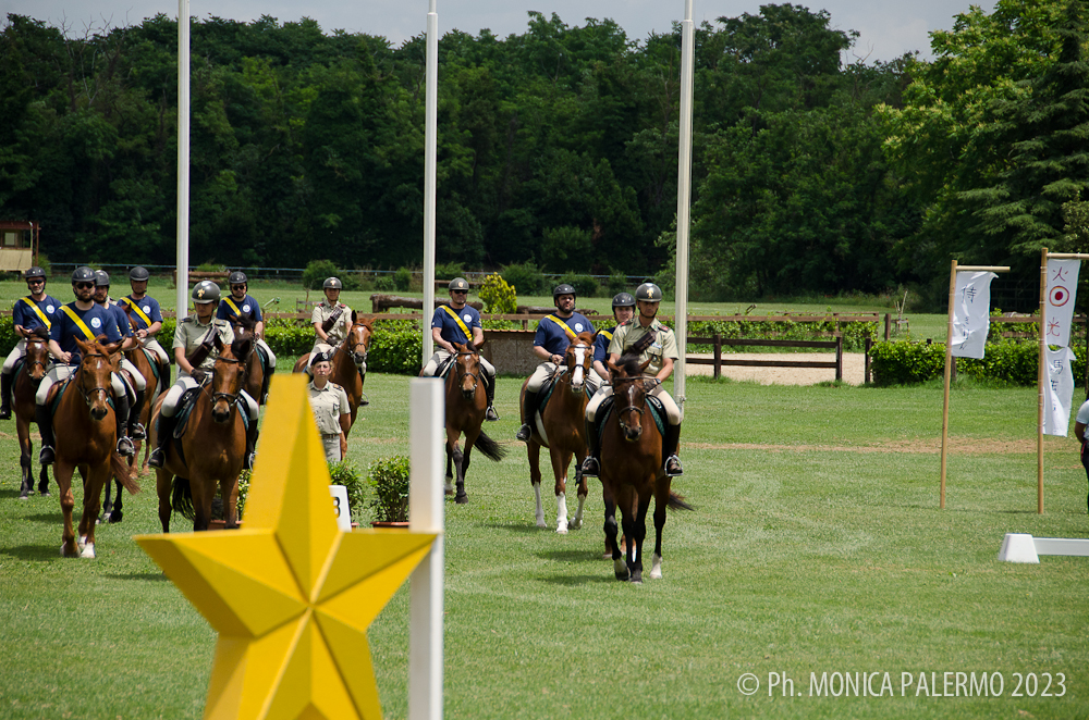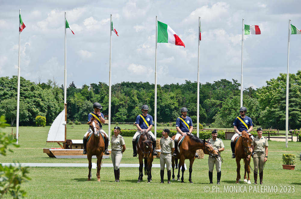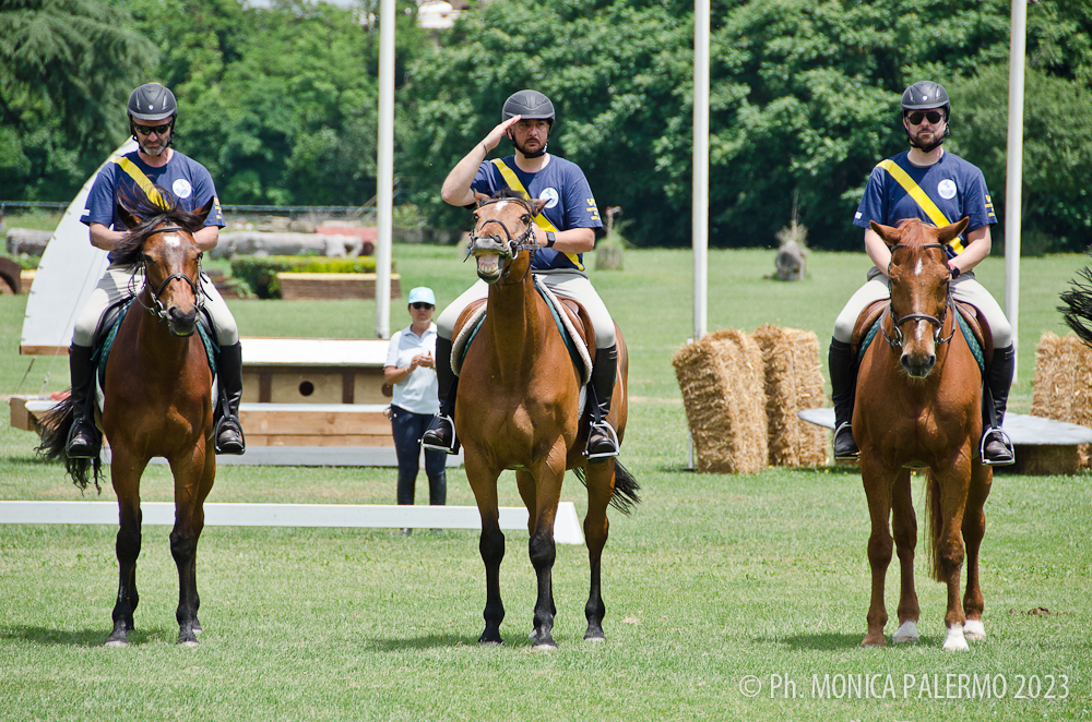La cerimonia dell’alzabandiera, sulle note del Canto degli Italiani, eseguito dalla Fanfara a Cavallo dei Verdi Lancieri, ha dato il via all’importante manifestazione equestre.