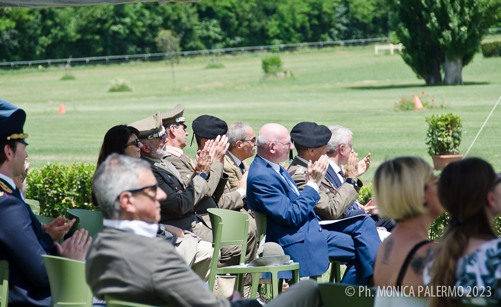 Particolarmente sentita la cerimonia dell’ammainabandiera in cui i Veterani sono stati parte attiva. Il primo maresciallo Ruolo d’Onore Giovanni Memoli accompagnato dal primo luogotenente Giampiero Monti Medaglia d’Argento al Valor Militare hanno consegnato Il Tricolore al Comandante Logistico dell’Esercito con il forte sentimento di attaccamento al dovere e alle Istituzioni, il pensiero rivolto ai Veterani delle Forze Armate italiane e tutti coloro che, con la riabilitazione equestre, possano superare i propri limiti.