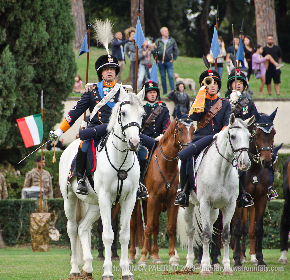 ll Capo di Stato Maggiore dell’Esercito, Generale di Corpo d’Armata Pietro Serino, nel salutare il personale impegnato nella cerimonia e tutti gli ospiti convenuti, ha voluto sottolineare: “Oggi celebriamo un aspetto importante: l’amicizia tra l’uomo e il vero protagonista di questa storia: il cavallo! Uno straordinario animale che si è fatto amico, commilitone, compagno d’armi, condividendo con i cavalieri disagi, sudore, fame, paure, ma senza far mancare mai il proprio impegno e, soprattutto il proprio coraggio”. E, concludendo si è rivolto ai “cavalieri” definendoli: “Grandi soldati capaci di andare oltre, servendo tra i primi anche in armi e specialità innovative dove serviva e serve tecnica e coraggio”.