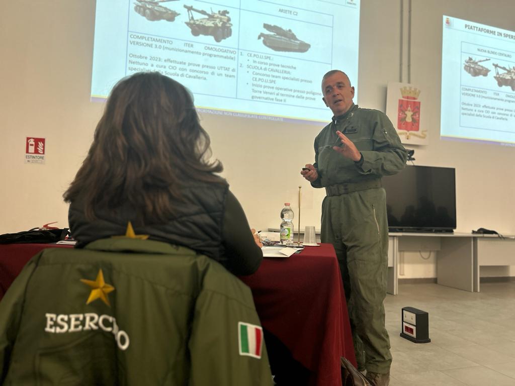 Il SSSD Isabella Rauti era accompagnata dal generale di corpo d’armata Carlo Lamanna, comandante per la Formazione, Specializzazione e Dottrina dell’Esercito ed è stata ricevuta dal comandante della Scuola di Cavalleria, il generale di brigata Claudio Dei.