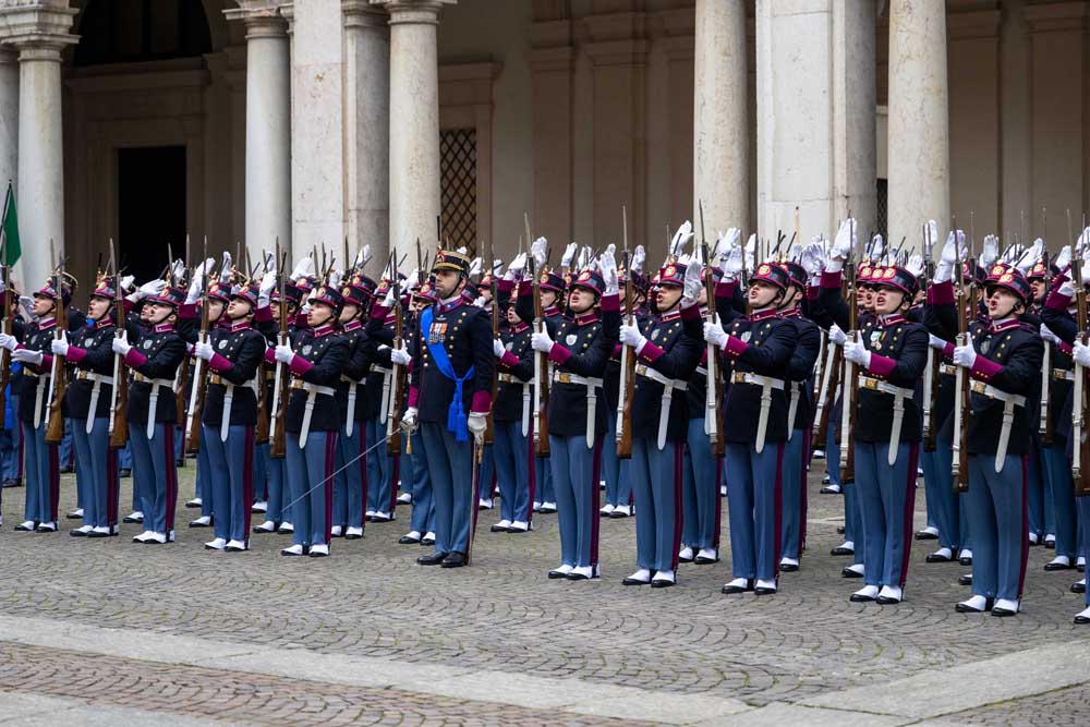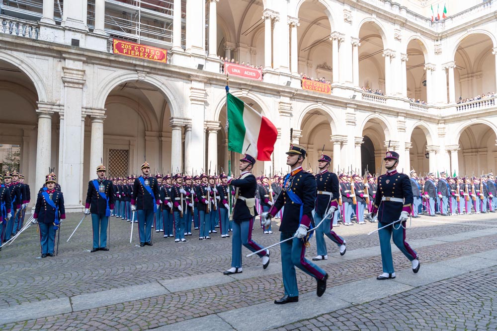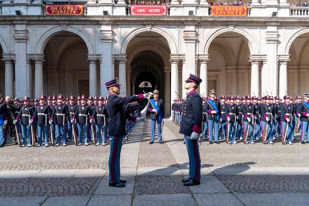 Modena, 8 marzo 2024 – Gli allievi ufficiali del 205° Corso “Fierezza” questa mattina hanno giurato in forma solenne, nel cortile d’onore del Palazzo Ducale di Modena, sede dell’Accademia Militare, alla presenza del Capo di Stato Maggiore della Difesa, ammiraglio Giuseppe Cavo Dragone, del capo di Stato Maggiore dell’Esercito, generale di corpo d’armata Carmine Masiello, e del comandante generale dell’Arma dei Carabinieri, generale di corpo d’armata Teo Luzi.
