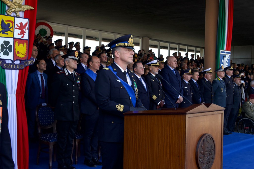Nel corso del suo intervento il Capo di Stato Maggiore dell’Aeronautica generale di squadra aerea Luca Goretti, rivolgendosi alle famiglie degli allievi, ha voluto sottolineare l’amore, la trepidazione e l’orgoglio che promana dai genitori e dai parenti degli allievi. “Loro – ha detto – hanno l’indiscusso merito di aver saputo sostenere le aspirazioni di questi giovani, fortemente determinati, accompagnandoli a intraprendere un percorso professionale e di vita nel rispetto di principi morali ed etici da sempre presenti in una istituzione come la nostra”. Il generale Goretti ha poi evidenziato come la ricorrenza di oggi cada al termine delle commemorazioni per il Centenario dell’Aeronautica, entrata nel secondo secolo di vita: “Voi siete gli apripista del nostro nuovo cammino. La nostra Forza Armata è un albero ormai secolare, forte, tenace con le radici fermamente legate al suolo e i rami protesi verso il cielo. Ti tale albero voi costituite la linfa vitale che irrora tutta la struttura e ci permette di guardare con fiducia al futuro oltre l’orizzonte dei nostri anni, consapevoli dell’estrema qualità che stiamo introducendo con il vostro corso e con tutti i corsi presenti in Accademia. Durante questo lungo periodo pieno di gloria e passione, abbiamo ampliato i nostri orizzonti operativi, che vi porteranno ad operare in settori dall’estrema valenza tecnologica e scientifica. Uno slancio continuo verso nuove sfide che vedono tra le ultime arrivate anche i sistemi di quinta e sesta generazione nonché i nuovi domini d’intervento come spazio e cyber, oltre a quelli tradizionali, sempre esclusivamente al servizio dell’Italia! Benvenuti a bordo allievi del Corso Eolo VI!”