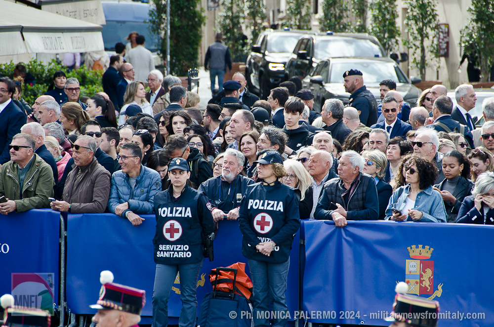 Successivamente, alle ore 11.00, alla presenza del Presidente del Senato della Repubblica Ignazio La Russa, ha avuto luogo la solenne cerimonia in Piazza del Popolo.