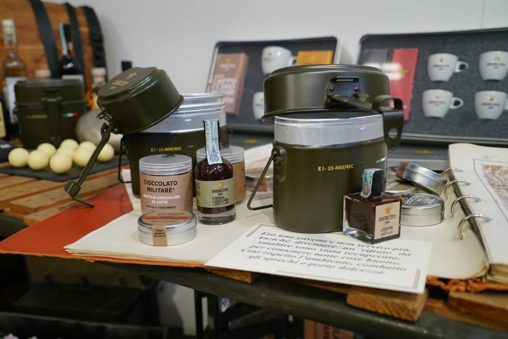 Il Cioccolato Militare è parte della razione giornaliera dei soldati fin dal 1937, grazie alla sua praticità e valore nutritivo, nonché di un gusto unico. Alta l’attenzione all’ambiente che si manifesta attraverso il riutilizzo di materiali, come le vecchie cassette di primo soccorso dell’Esercito trasformate in contenitori per cioccolato, biscotti e bevande, e le gavette impiegate come contenitori per i prodotti a marchio Esercito.
