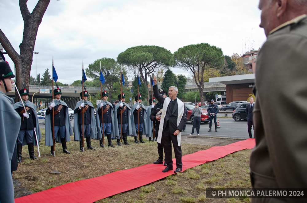 Sul lato destro un picchetto dei Lancieri di Montebello (8°), sul lato sinistro Ufficiali Superiori affiancati dalle associazioni d’arma, quali Associazione Nazionale Genieri e Trasmettitori d’Italia, Istituto Nazionale per la Guardia d’Onore alle Reali Tombe del Pantheon, Associazione Nazionale Bersaglieri sezione di Roma.