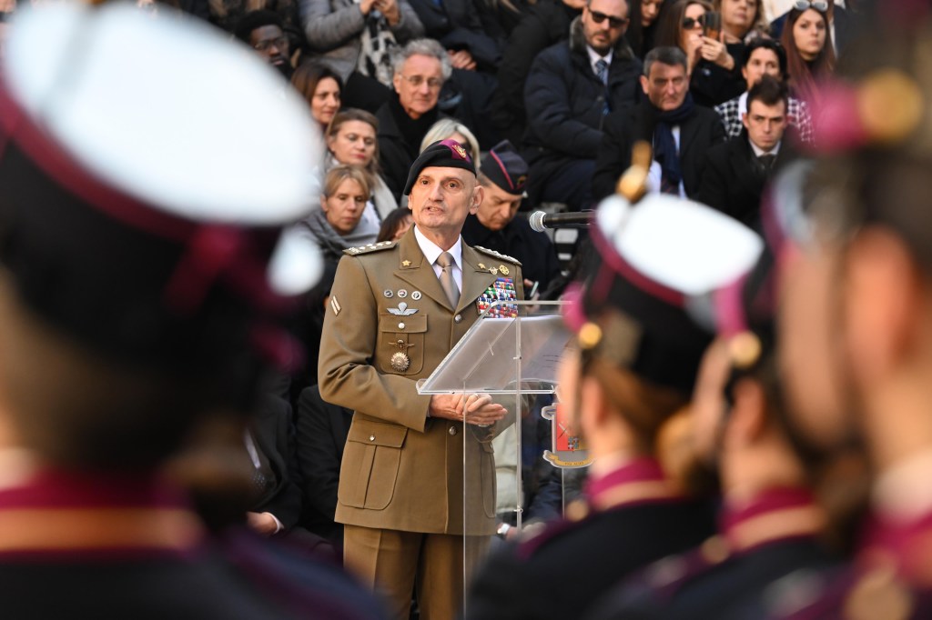 Il Capo di SM dell’Esercito, gen. c.a. Carmine Masiello, agli allievi ufficiali del 206° corso “Dignità”: “tutto l’Esercito vi abbraccia e vi ringrazia per la scelta che avete fatto: un impegno di fedeltà e lealtà nei confronti dei nostri valori e delle nostre tradizioni, che sono il patrimonio etico dell’Istituzione e le colonne portanti della vita militare. Il giuramento dinanzi al Tricolore è un patto di onore e disciplina che vi lega alla Patria, al servizio e al dovere. Non scordatelo mai e siatene sempre orgogliosi! È il vostro dovere che consente alla società civile di vivere in sicurezza, in libertà e in democrazia. Senza di voi, i diritti degli altri non sarebbero garantiti. Sono cambiati i tempi, sono cambiate le minacce ed è necessario essere attrezzati per rendere più credibile la nostra deterrenza. Perché, come ci ha ricordato il Signor Ministro della Difesa, “gli Stati si difendono con Forze Armate preparate”. In questo nuovo mondo sarete Comandanti, perché, indipendentemente dalle armi, corpi e specialità che sceglierete e vi saranno assegnate, vi sarà affidata la responsabilità di ciò che c’è di più prezioso: donne e uomini che guarderanno a voi sia per la professionalità sia per quello che potrete insegnare loro nel lavoro, ma soprattutto per come vi comporterete e, per il vostro esempio, rimarranno al vostro fianco anche nei momenti peggiori! Serve una nuova “forma mentis”. Gli errori sono costruttivi. I nostri giovani vanno incoraggiati a pensare, a esprimere le proprie idee. Soltanto sbagliando si può crescere. Buona fortuna e grazie perché oggi ho condiviso il vostro entusiasmo, la vostra energia e la vostra voglia di essere nella nostra famiglia, dove non sarete mai soli, dove ci sarà sempre chi è pronto ad aiutarvi e a supportarvi in ogni momento. Da oggi fate parte di un’unica schiera, una acies!”