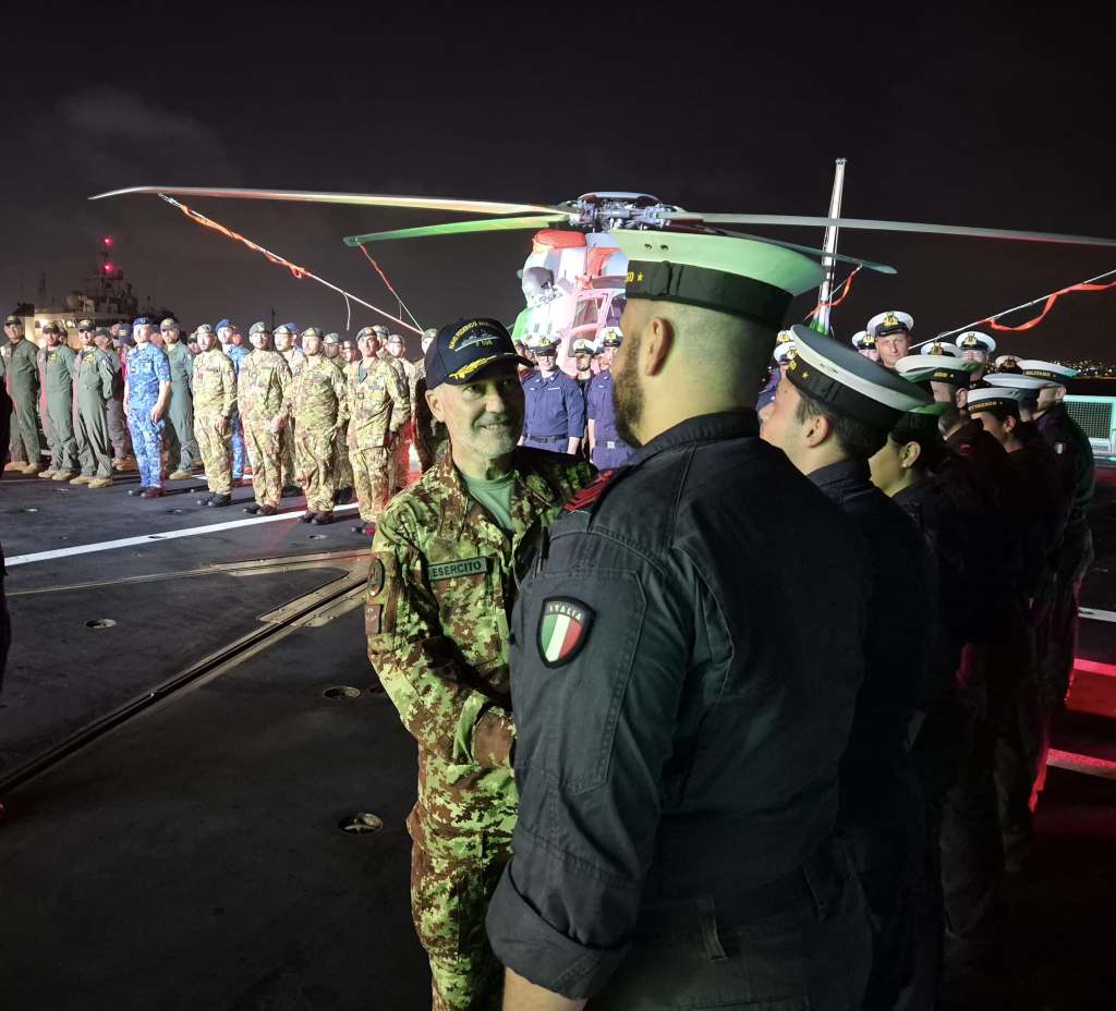 La visita è proseguita a bordo di Nave Martinengo, FREMM italiana al comando del capitano di fregata Giuseppe Germinario, che dal 1° febbraio ha assunto il ruolo di flagship dell’operazione a guida UE “Aspides”, i cui assetti aeronavali contribuiscono a garantire la sicurezza marittima e salvaguardare la libertà di navigazione lungo le principali vie di comunicazione.