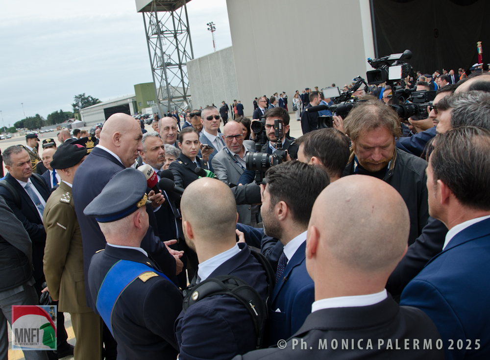 Il capo di Stato Maggiore della Difesa, generale Luciano Portolano, nel corso del suo intervento ha ricordato l’impegno continuo e la versatilità dell’Aeronautica Militare sotto la guida del generale Goretti, evidenziandone il ruolo cruciale in missioni nazionali e internazionali “l’approccio multidimensionale e collaborativo che ha caratterizzato l’operato dell’Aeronautica Militare durante il mandato del Generale di Squadra Aerea Goretti, durante il quale la Forza Armata ha assicurato, senza soluzione di continuità, le funzioni di difesa aerea nazionale e dello spazio aereo alleato, di sorveglianza, ricognizione, trasporto e supporto alle operazioni e missioni in cui siamo stati e siamo ancora oggi impegnati. Periodo durante il quale, ha proseguito il Capo di Stato Maggiore della Difesa, l’Aeronautica militare si è distinta anche per la sua versatilità garantendo, insieme alle altre Forze Armate, la sicurezza di grandi eventi, ultimi dei quali le esequie di Papa Francesco e il successivo conclave del 7 e dell’8 maggio, che ha portato all’elezione di Papa Leone XIV”.
